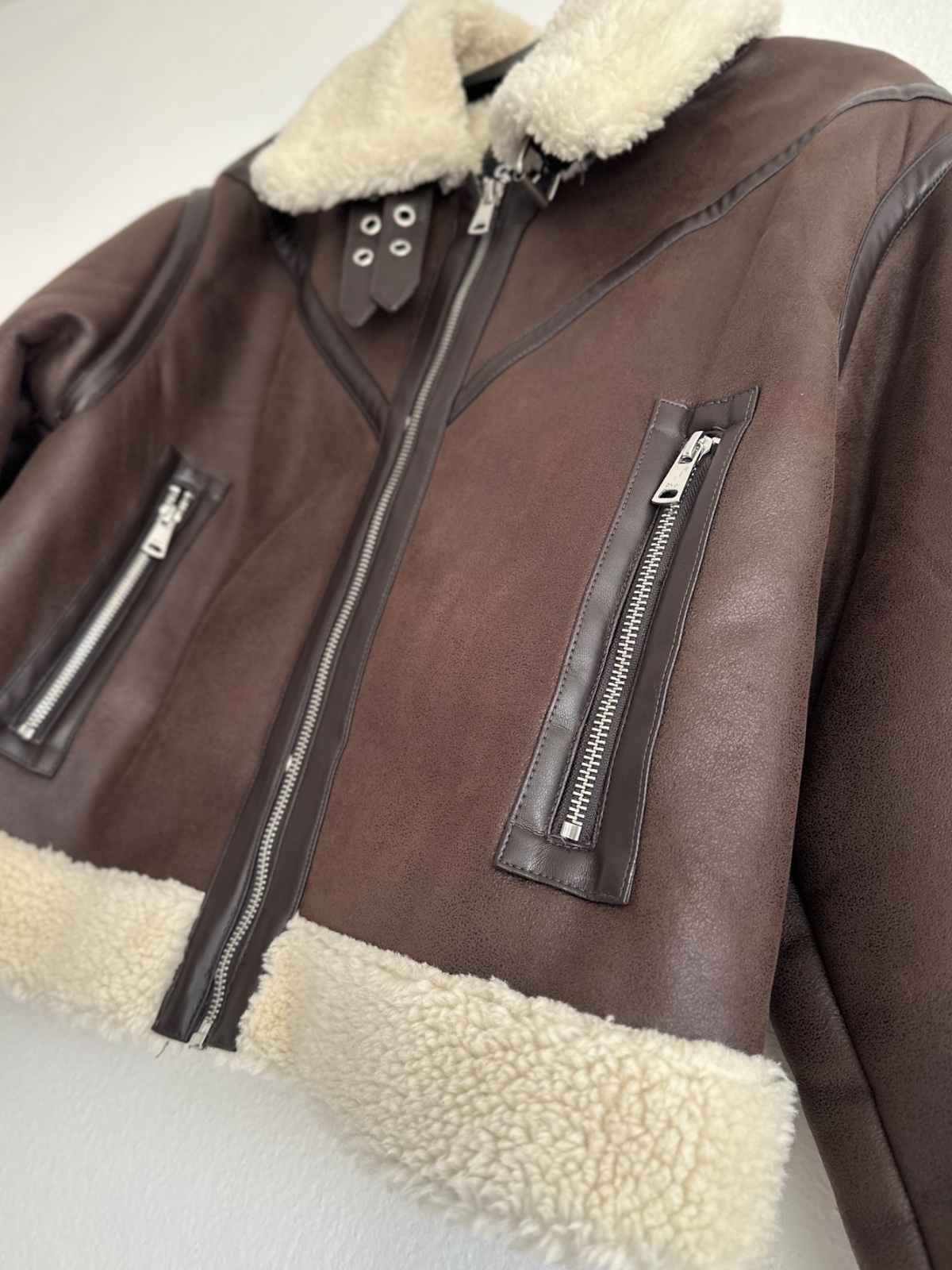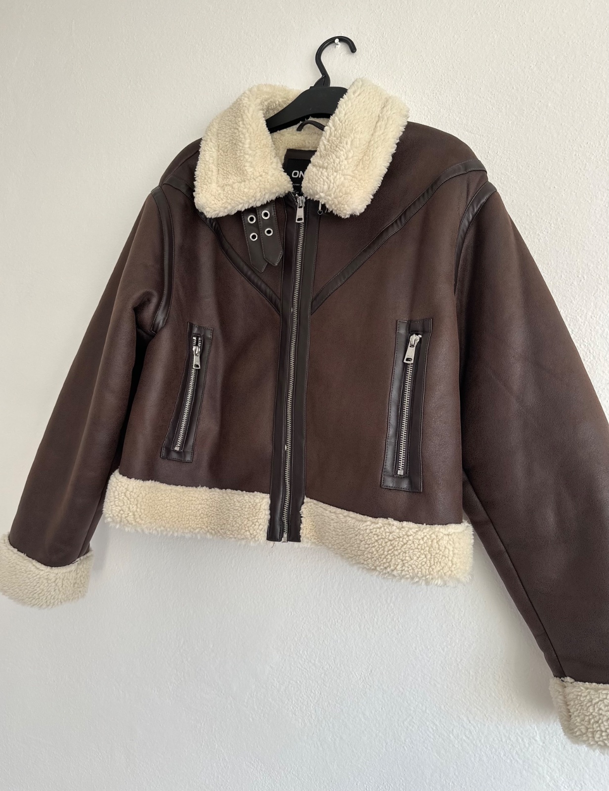 Nový, s visačkou. Manžel mi ho kúpil ako darček, bohužiaľ je mi veľký. Stojatý golier, opasok, vačky na zips, zapínanie na zips + patentky. Rozmery sú na fotkách.