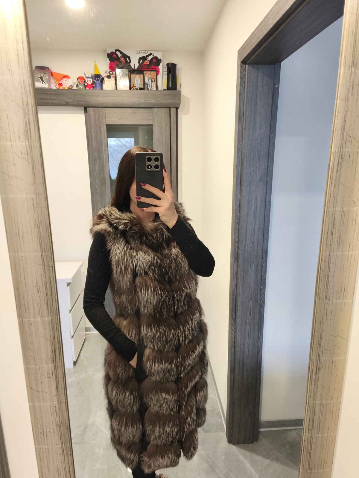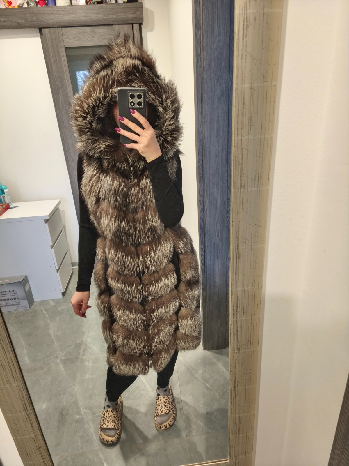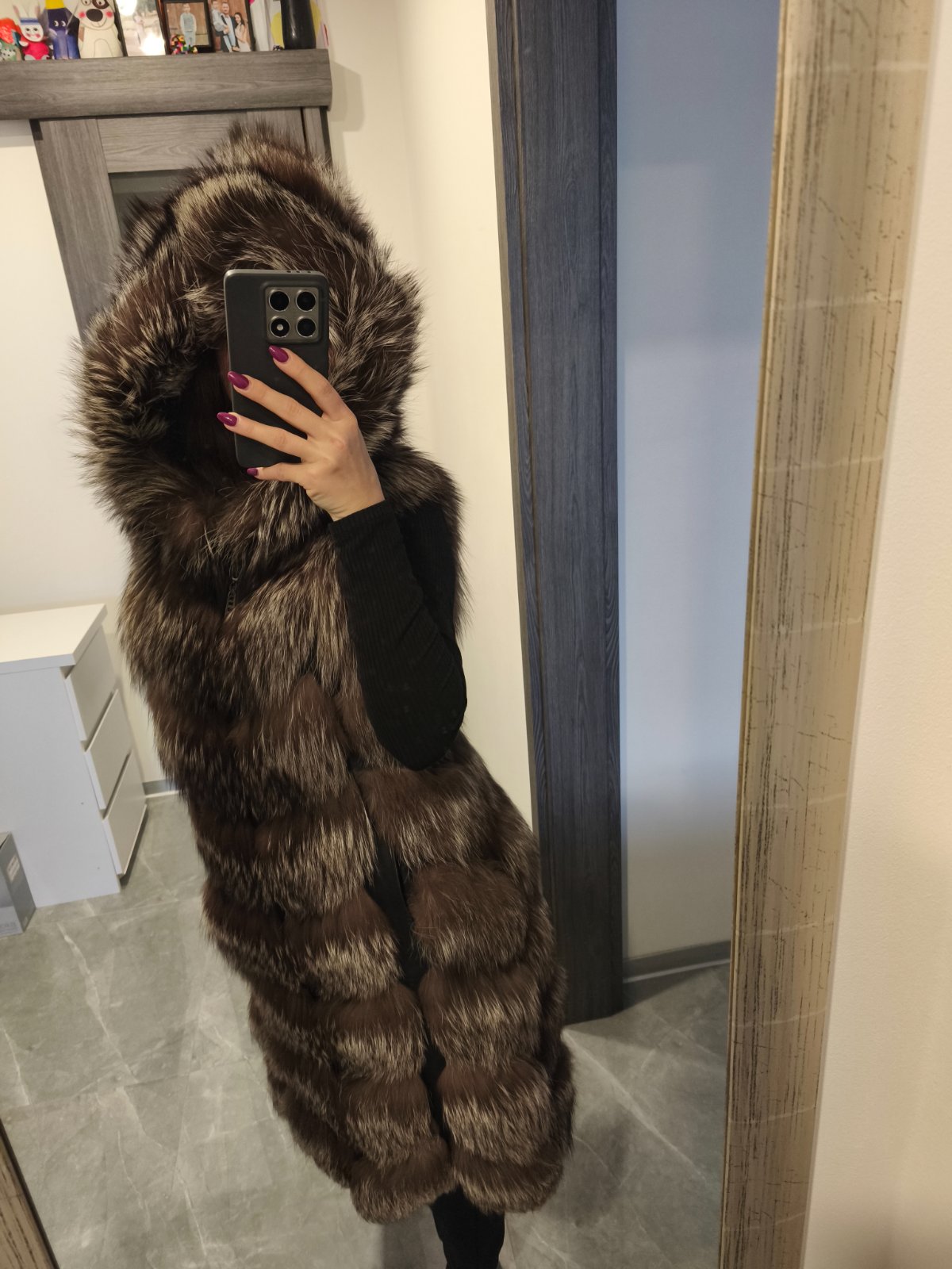 Nadherna luxusna velmi tepla dlha verzia s bohatou kapucnou kvalitnej znacky Korczak i Syn velkost S zapina sa na zips super tepla. Oblecena asi 3x na striedacku s vela inymi v top stave. Farba je krasna cokoladovo-hneda melirovana. Povodna cena bola okolo 900€.