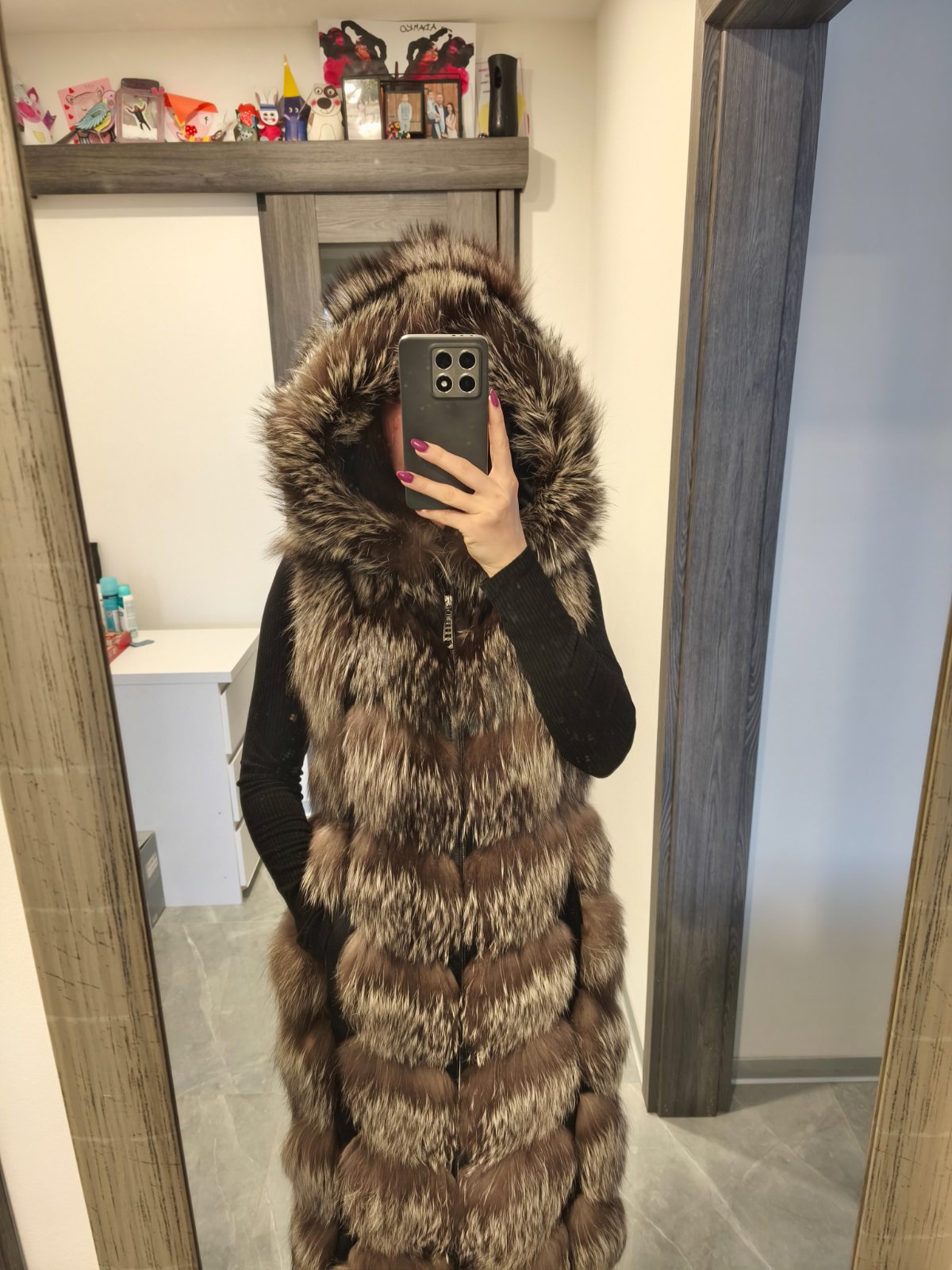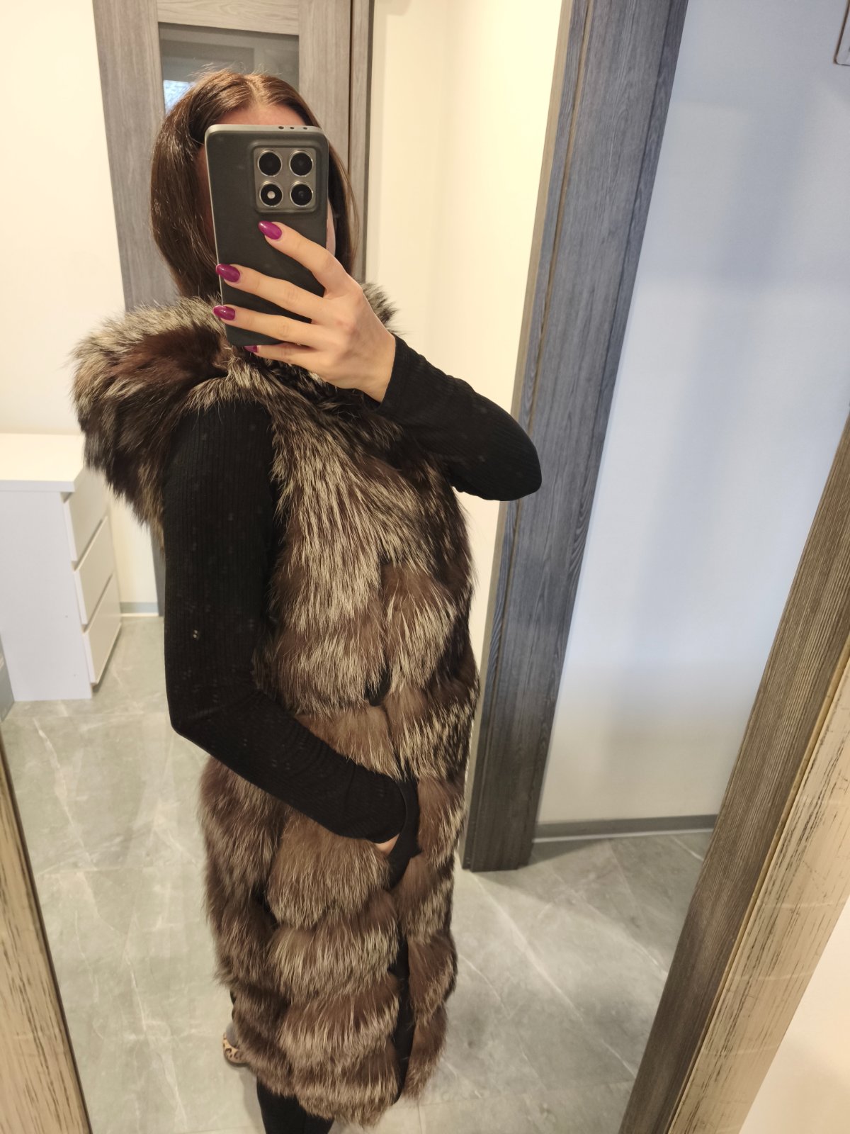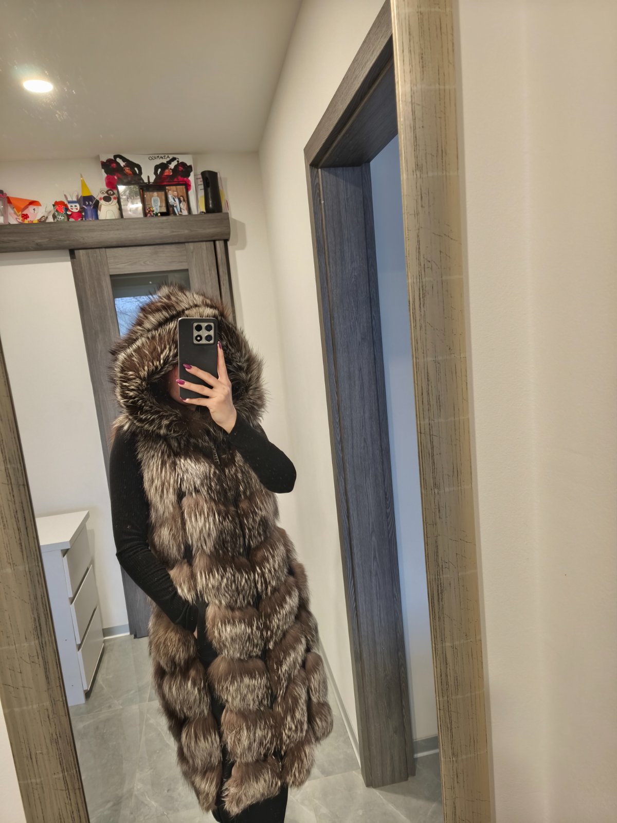 Nadherna luxusna velmi tepla dlha verzia s bohatou kapucnou kvalitnej znacky Korczak i Syn velkost S zapina sa na zips super tepla. Oblecena asi 3x na striedacku s vela inymi v top stave. Farba je krasna cokoladovo-hneda melirovana. Povodna cena bola okolo 900€.