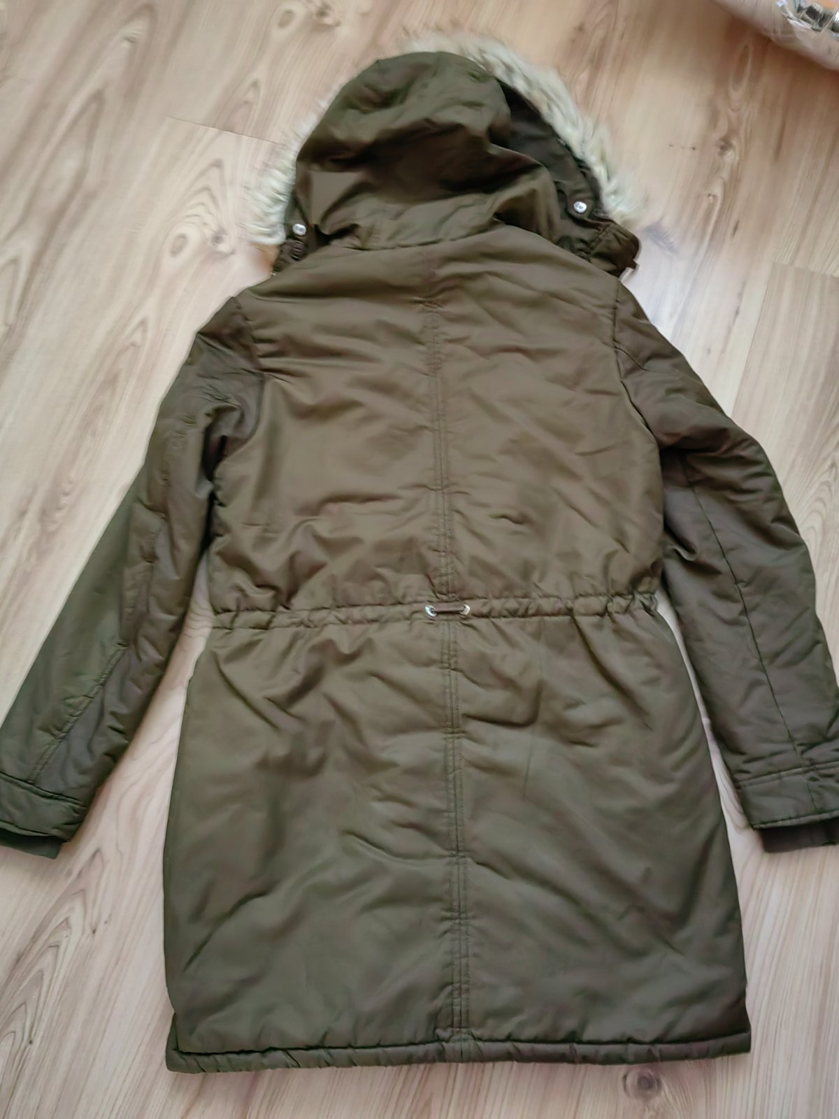 Nosený bez poškodenia, iba jemnučké minižmolky, vid.foto.Ponúkam za symbolickú cenu, určite ešte poslúži. CD 67cm, šírka meraná pod pazuškou 45cm, dĺžka rukáva meraná od kapucne 70cm.