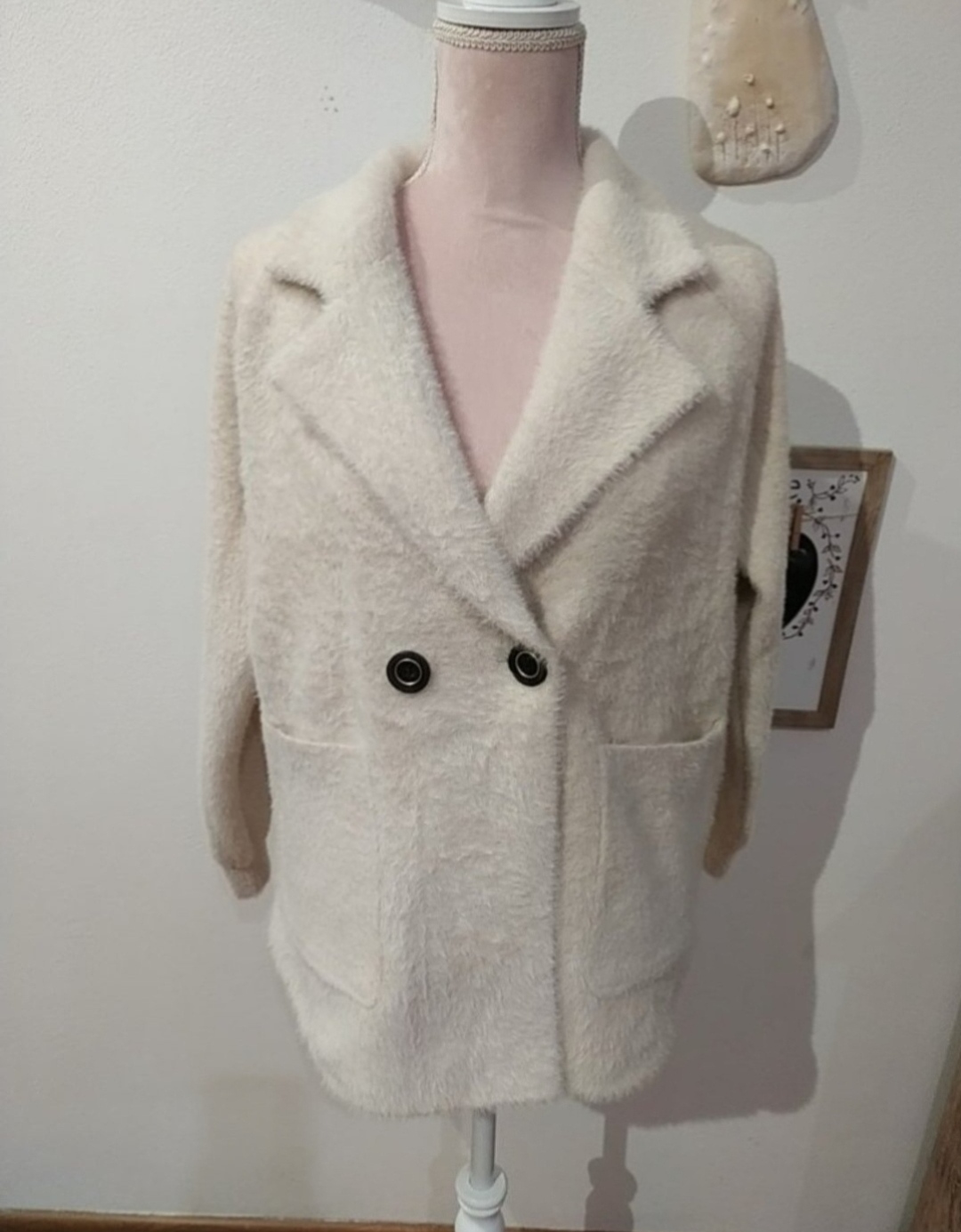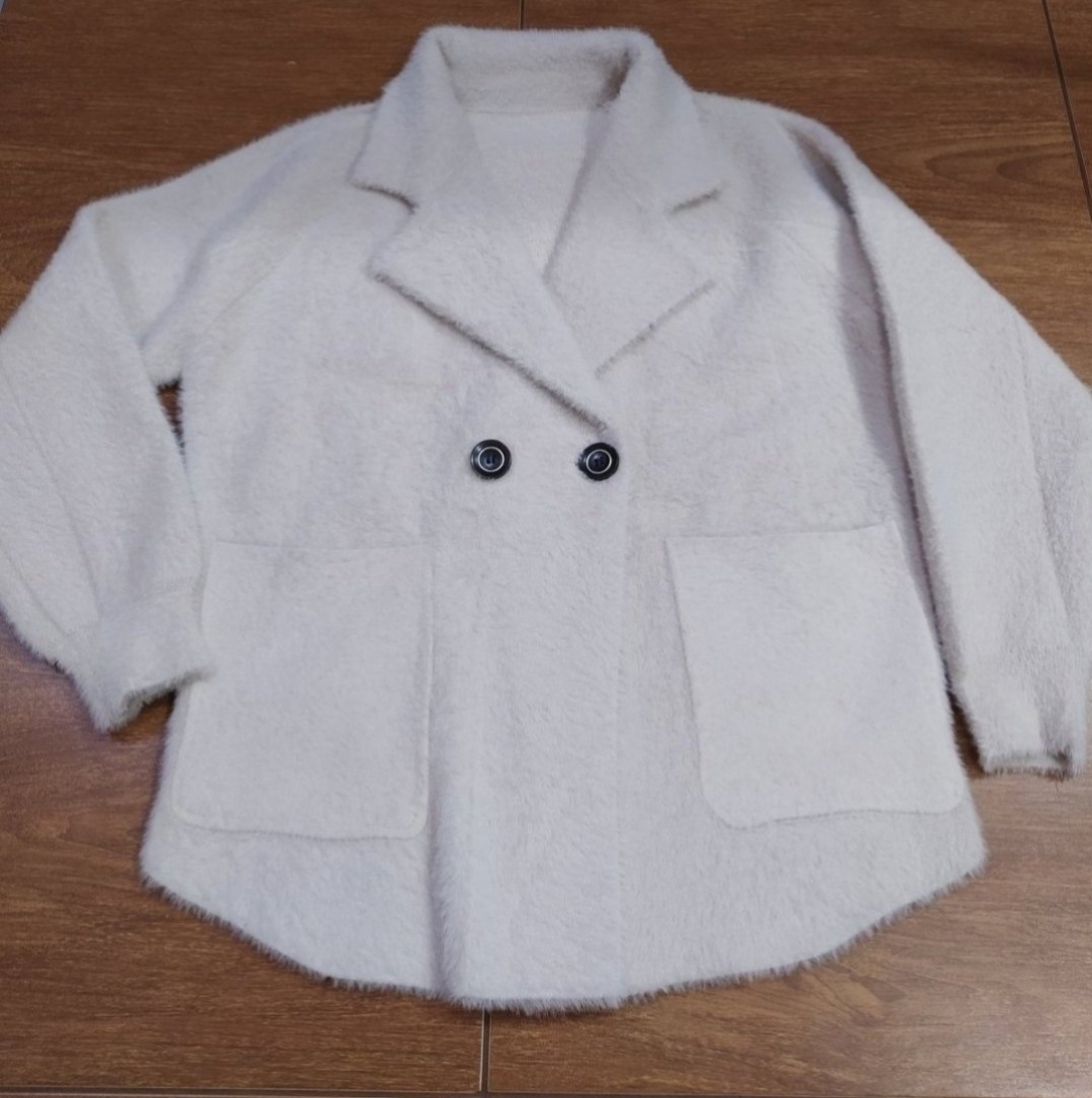 Nádherná, dlhšia alpaka s nádychom do ružová v top stave. Rozmery na foto. Zapínanie na jeden gombík.