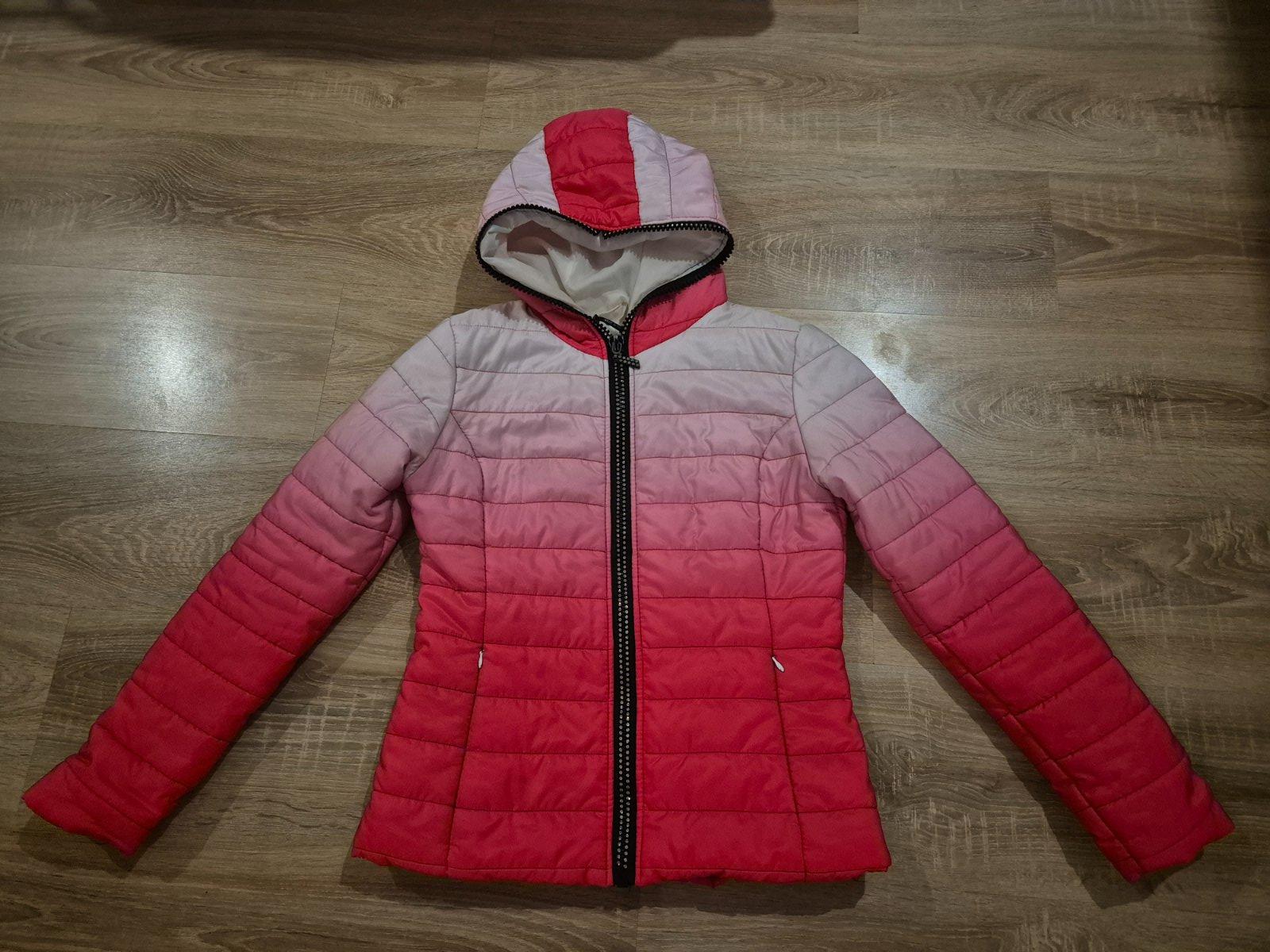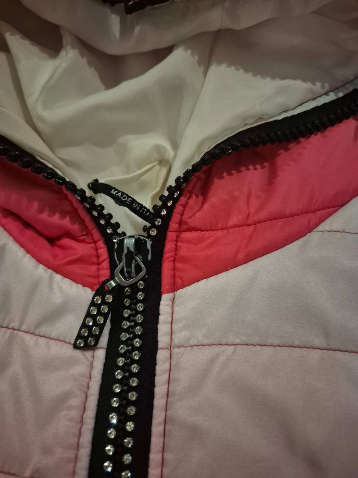 Bundička v peknom stave. V golieri je nerovnomerne rozložená výplň, nevidieť to. Pri nosení vobec nevadilo, len upozorňujem. Po praní treba potriasťˇnech sa urovná. Farba krásna lososovo ružová, re...