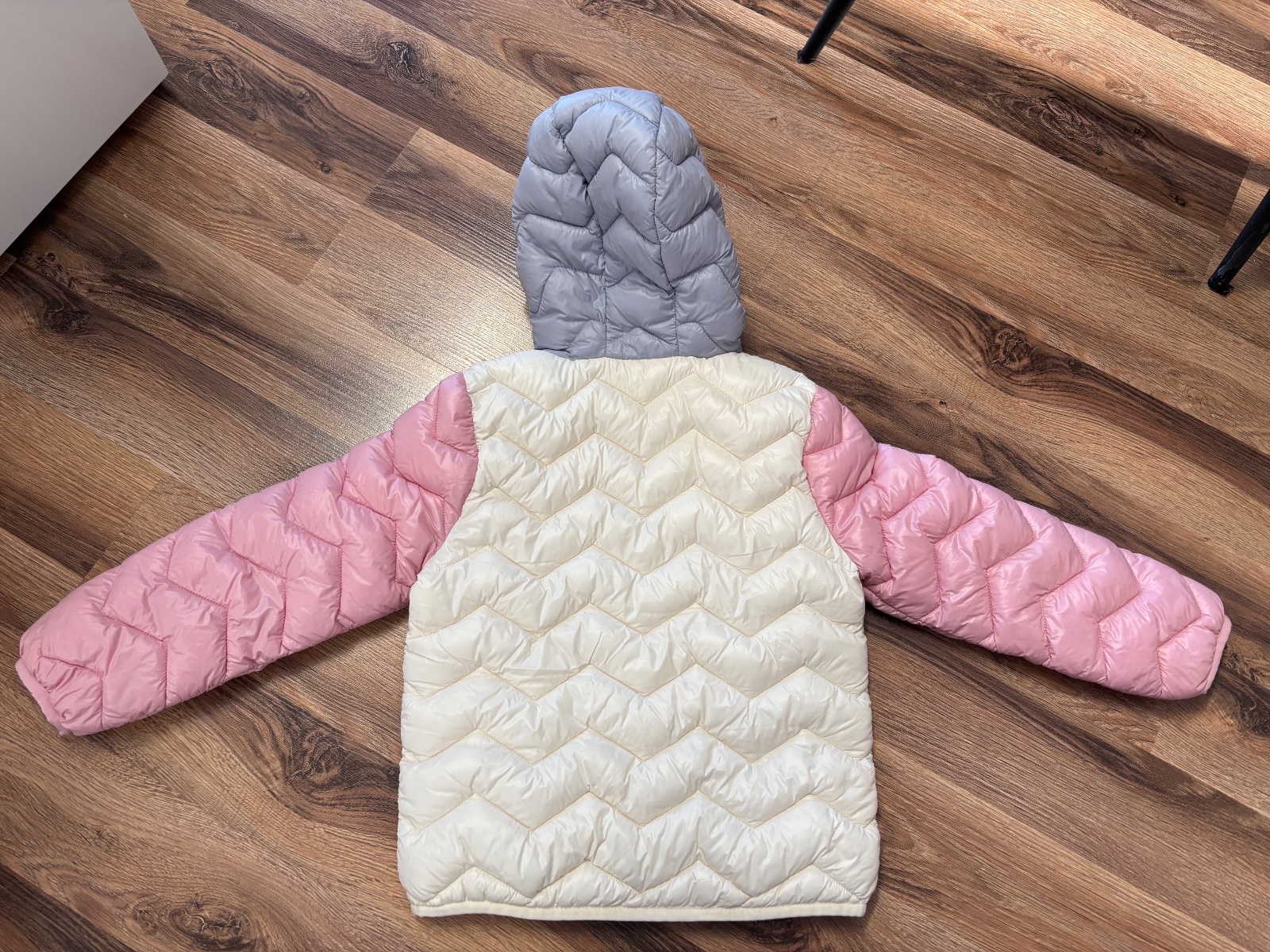 Ponukam prijemnu, kvalitnu bundu po dcere, znacka United Colors of Benetton, velkost 116, no my sme nosili ako 110, ako 116 je uz dost tesna (baculatejsie dieta). Bez poskodeni, na bielej casti mozu byt nepatrne skrvnky, vacsinu sa mi podarilo vyprat. Kupovana bola nova, dcera nosila jednu jar, jednu jesen.