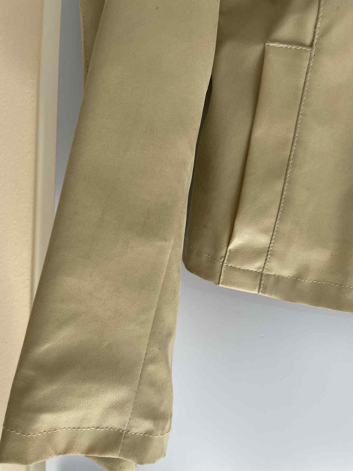 jednoduchá bundička béžovej farby,materiál - niečo ako koženka s textilným povrchom,nosená,super sedí na postave