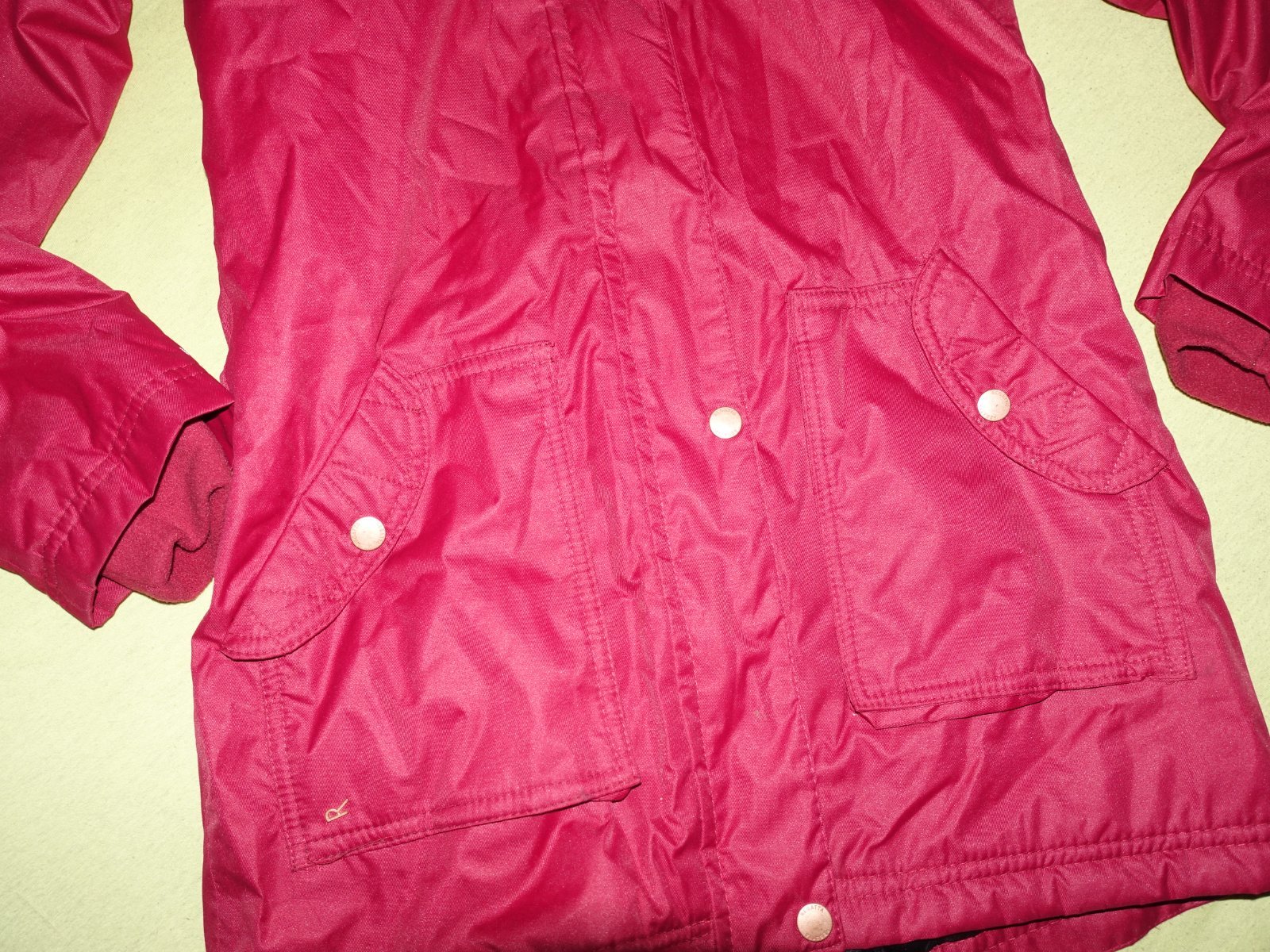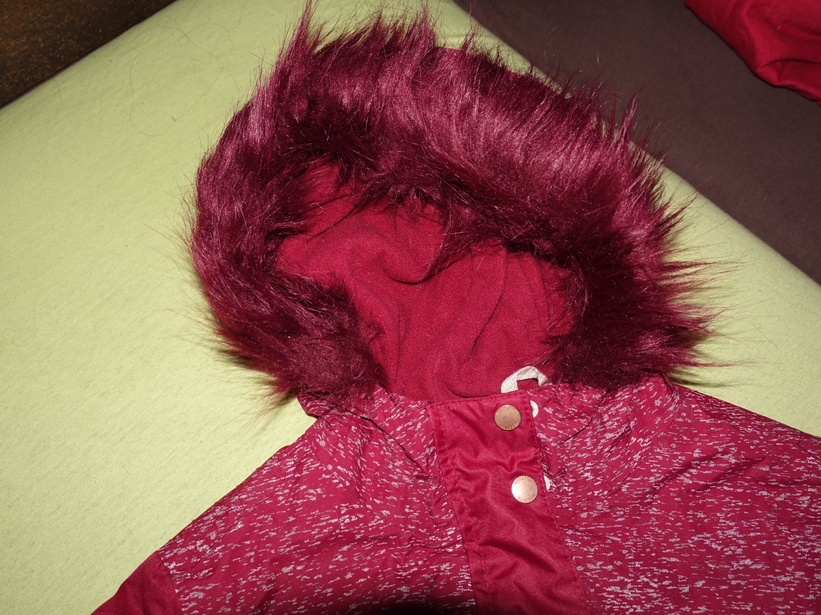 Krasna bundicka vo velmi dobrom stave. Nie je uplne hrubizna, je skor do miernej zimy. Je nepremokava- technologia ISOTEX 5000.