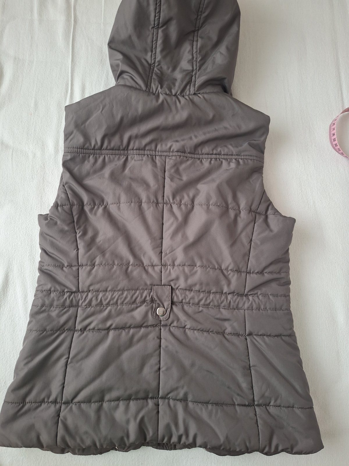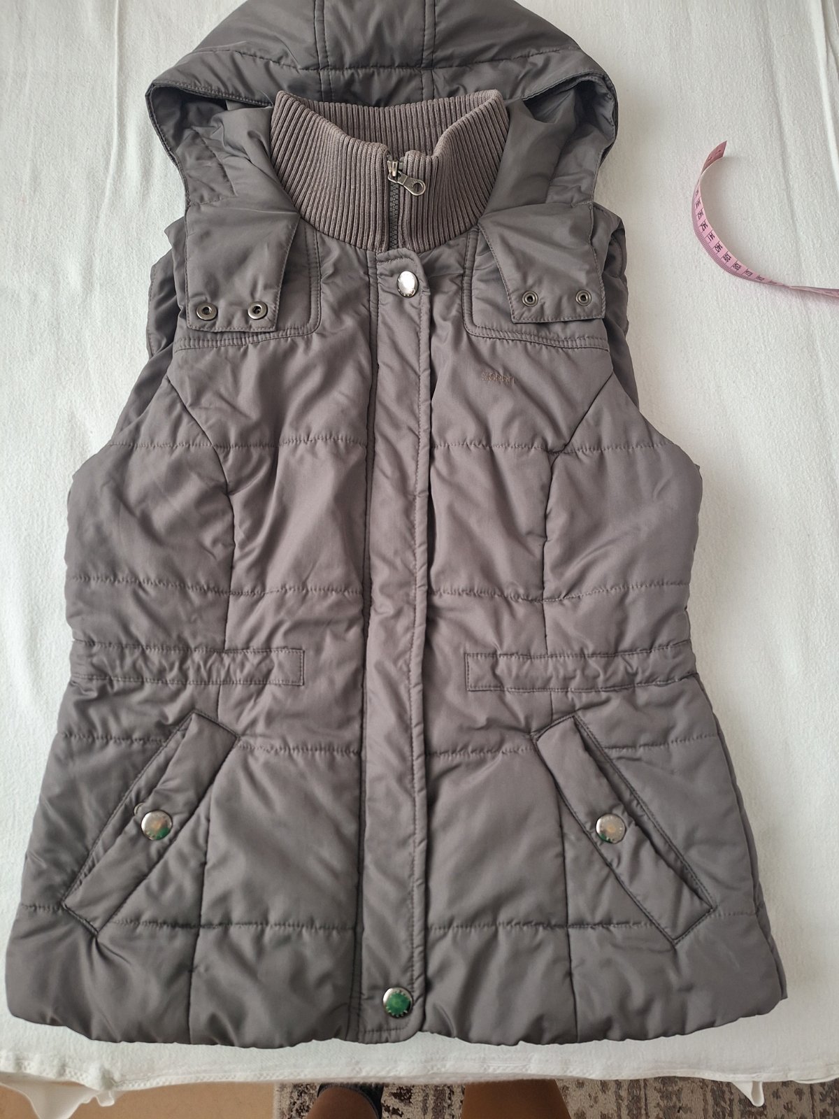Posúvame nosenu ale bez poškodení vestu , viď foto veľkosť uvádzaná 38 sadne na S poprípade možno menšie M , na bokoch dve vrecká zapínanie na cvocky
