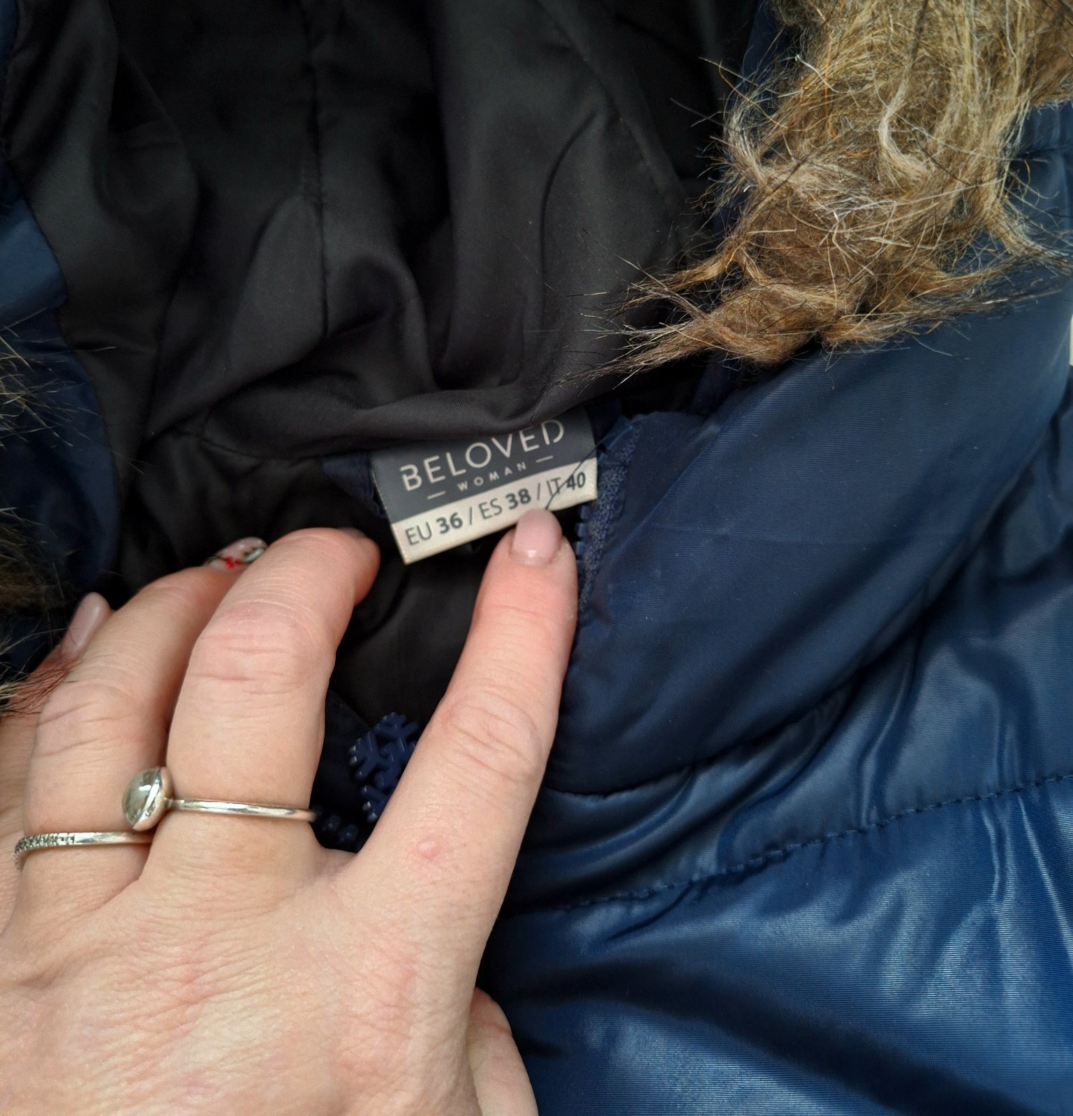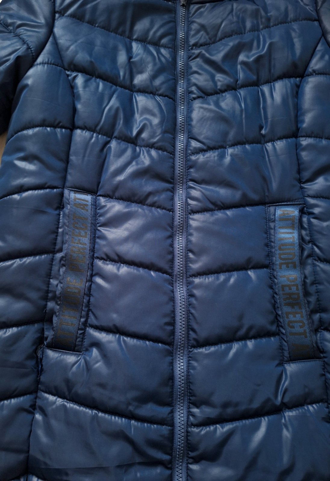 Tmavomodry damsky kabatik, velmi sik, je novy, sedi na velkost 36. Ma 50% podiel vlny. Je velmi kvalitny, mne bohuzial maly. PC bola 90€.