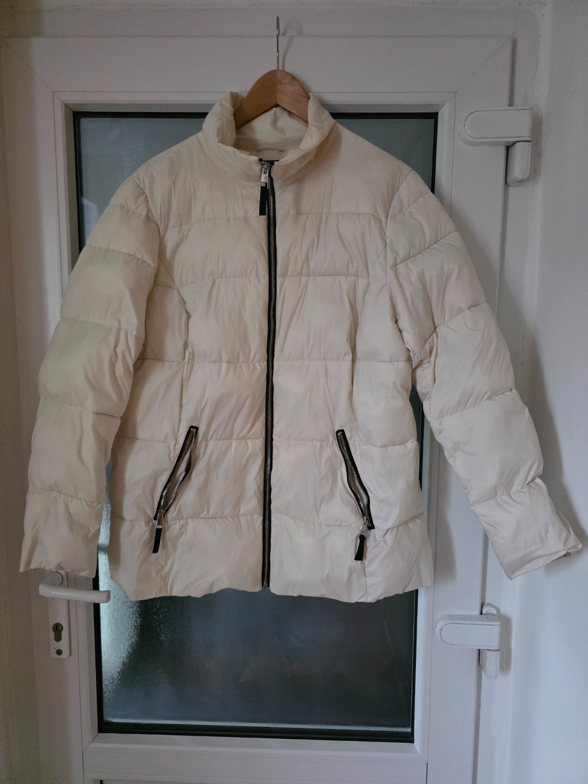 Dámska zimná bunda svetlá, veľ.XL, podšívka prešívaná odnímateľná, kapucňa s kožušinkou pripnutá na gombičky, dá sa nosiť aj ako jarná vetrovka cena =30eur dámska bordová zimná bunda veľ.XL, podšív...