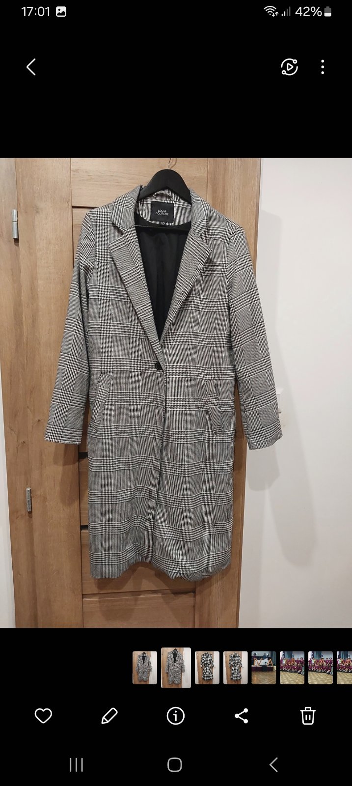 Kabátik zn.ORSAY, veľ.38, materiál vzoru "Rybia kosť". Kabátik je vhodný ako prechodný alebo do miernej zimy.