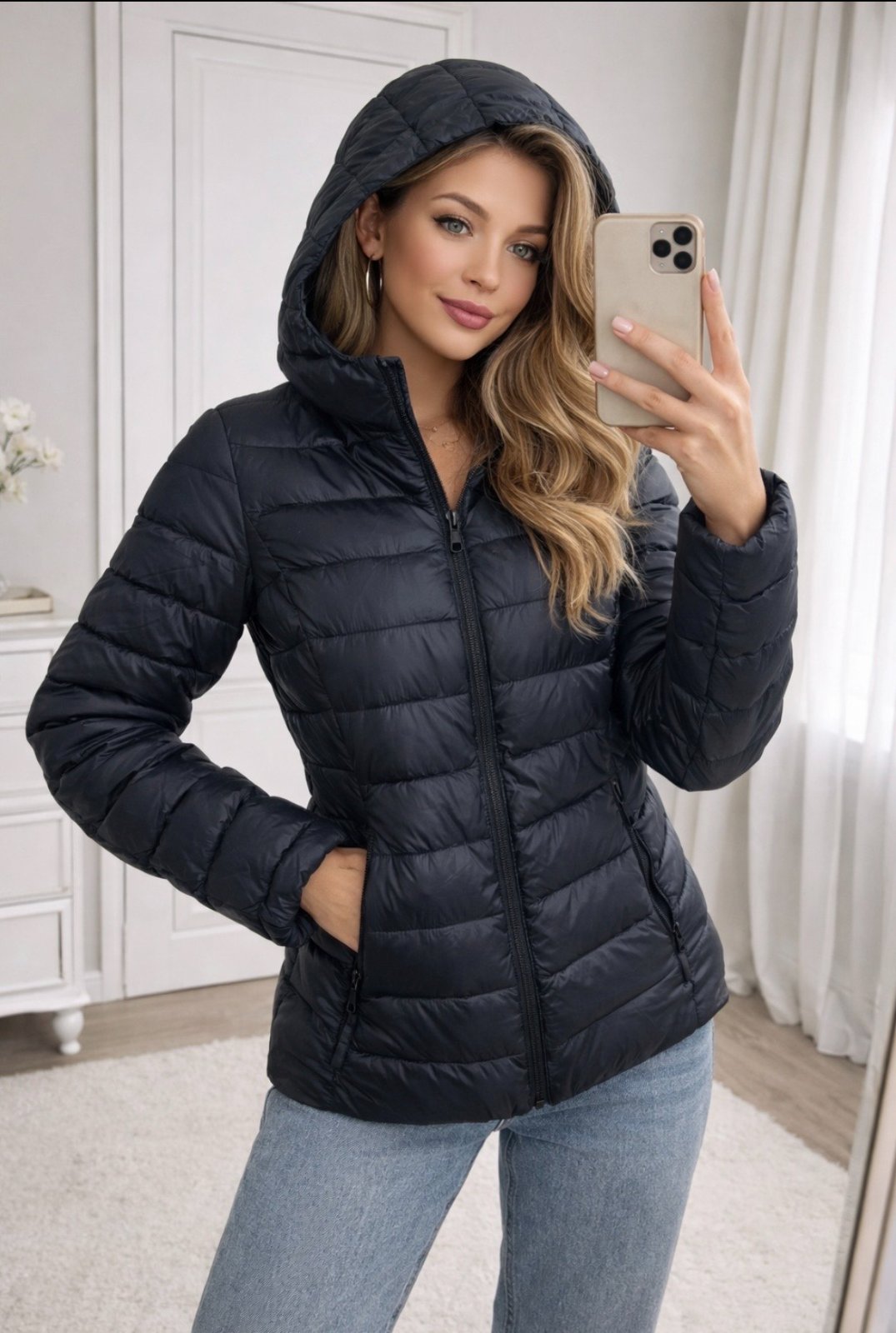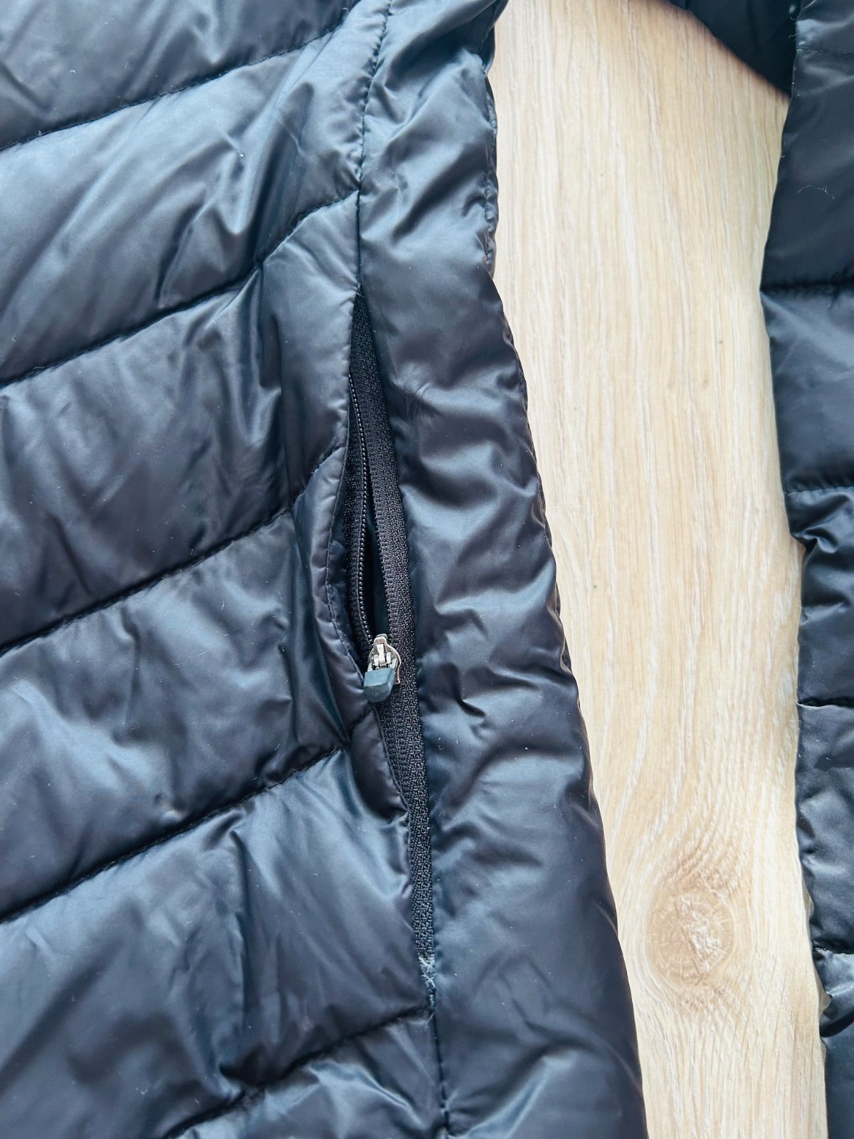Bunda je veľmi ľahučká, zvnútra páperová. Zapína sa vpredu na zips a má kapucňu. Má bočné vrecká, ktoré sa zapínajú na zips. Takisto má aj dve vnútorné vrecká. Bunda je vyrobená z ľahkej, priedušnej a vetru-odolnej tkaniny.