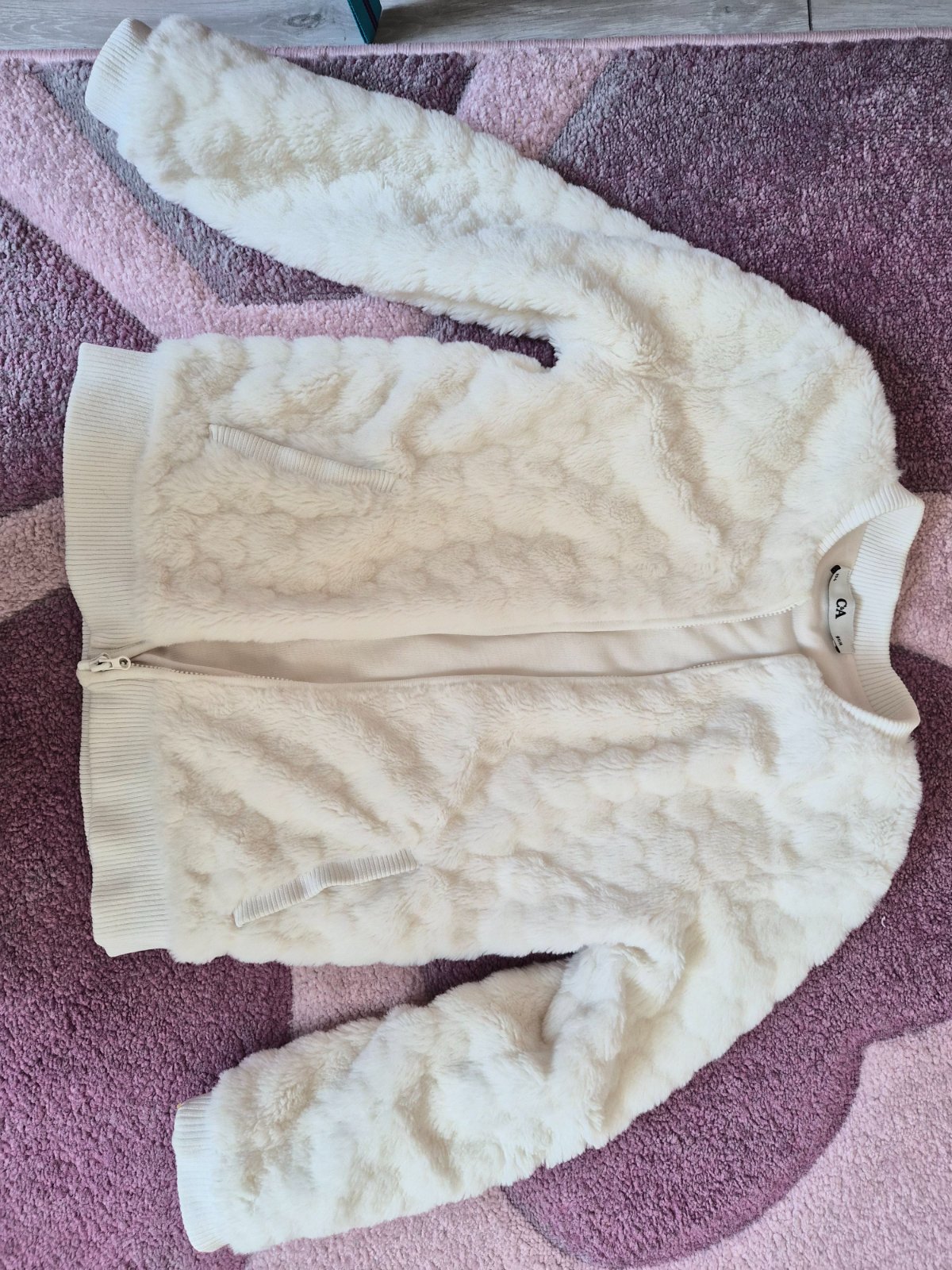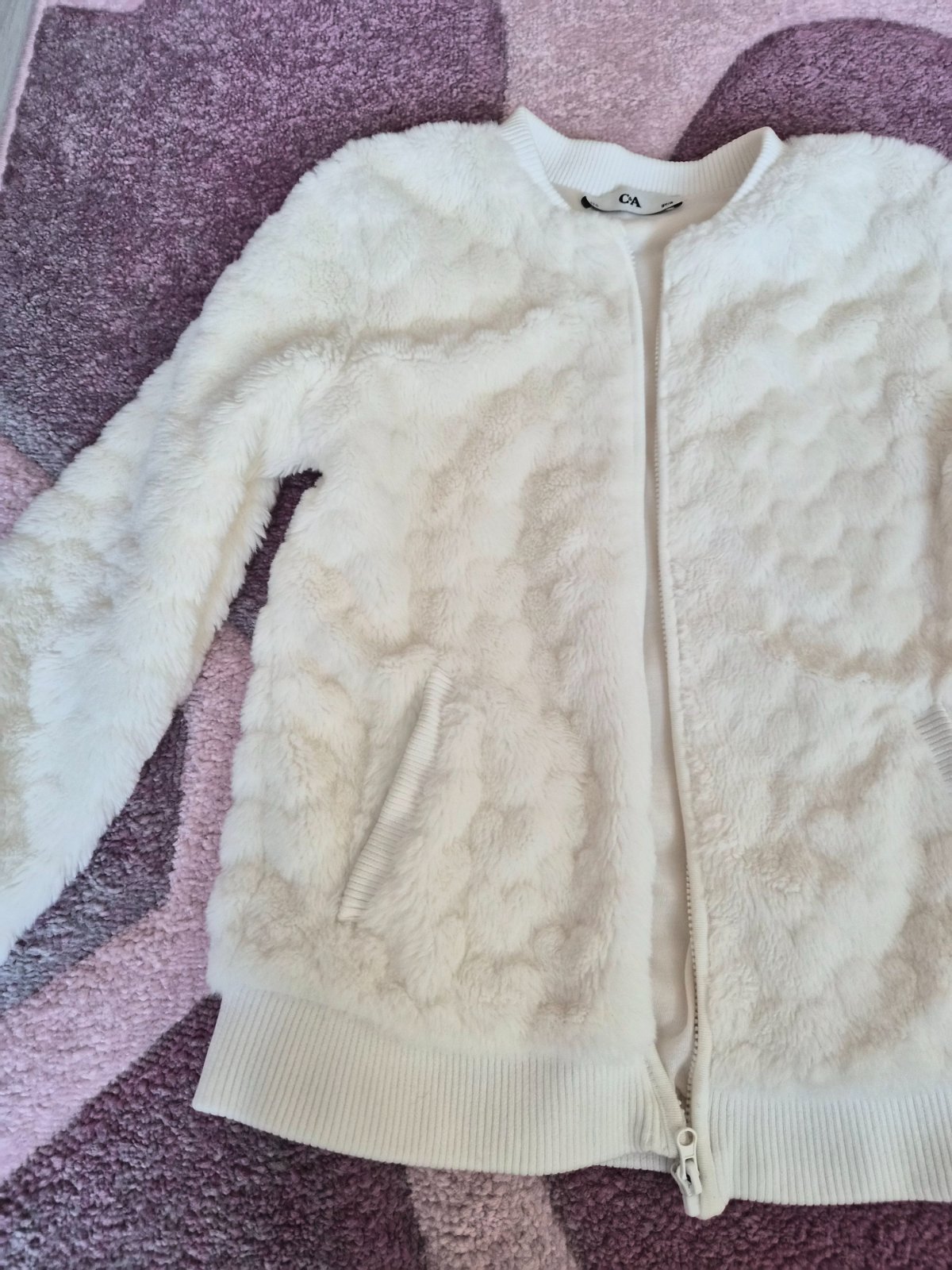 dobry stav,úpletový materiál, vzhľadovo niečo medzi mikinou a tenkou bundou. Zn. Here there, kúpená v C&A. dlžka 45cm šírka pod pazuchami 40x2cm rukav od krku 56cm