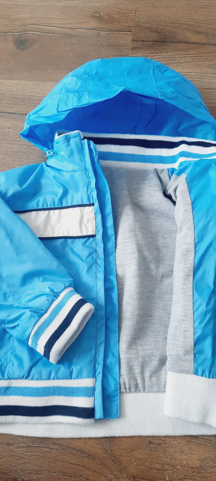 Tenká, podšitá bavlnenou látkou.V golieri ma zabudovanú kapucňa.