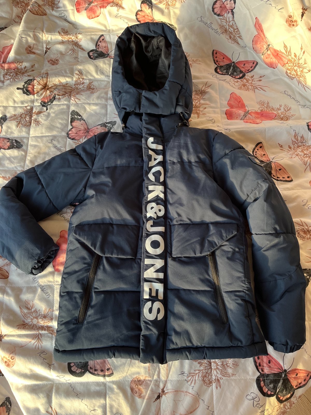 Predám krásnu, kvalitnú a naozaj veľmi teplú bundičku Jack & Jones pre chlapca, zapínanie na zips plus suchý zips, odnímateľná kapucňa, vačky na zips, v tmavomodrej farbe.