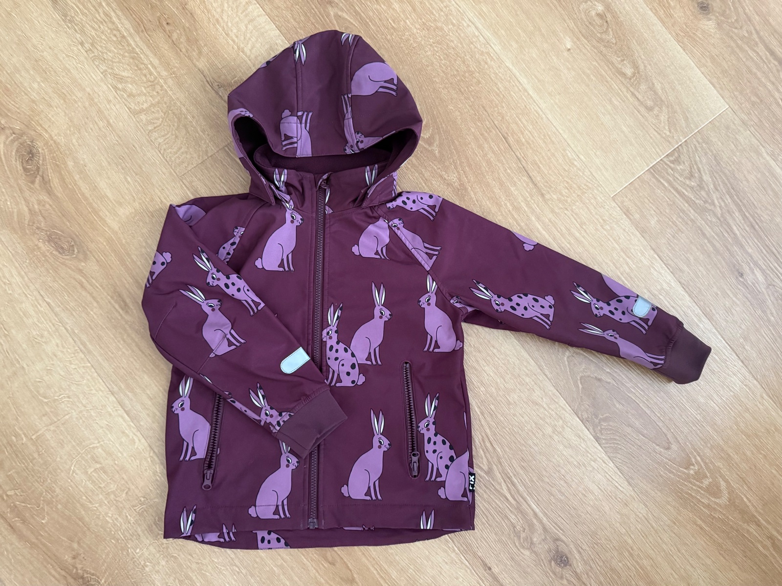 Popraskany obrázok na kapucni a malý fliacik.