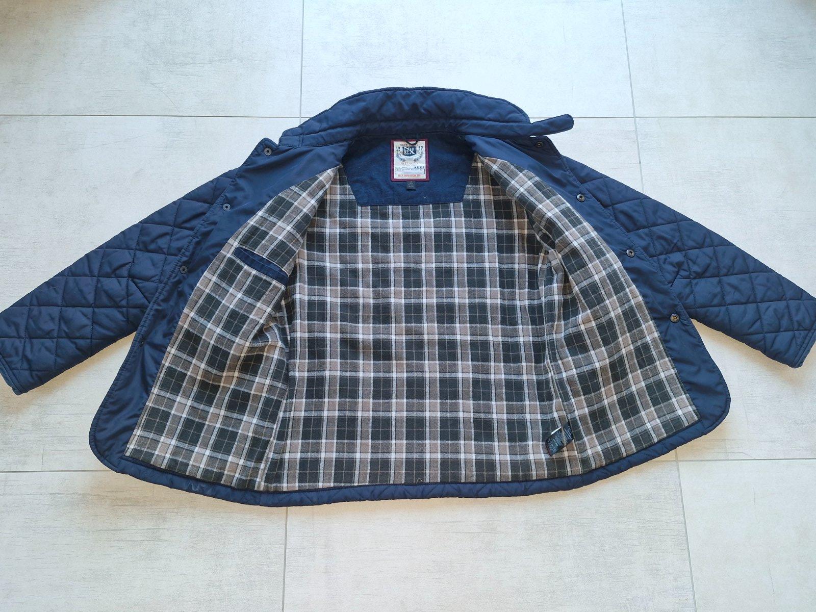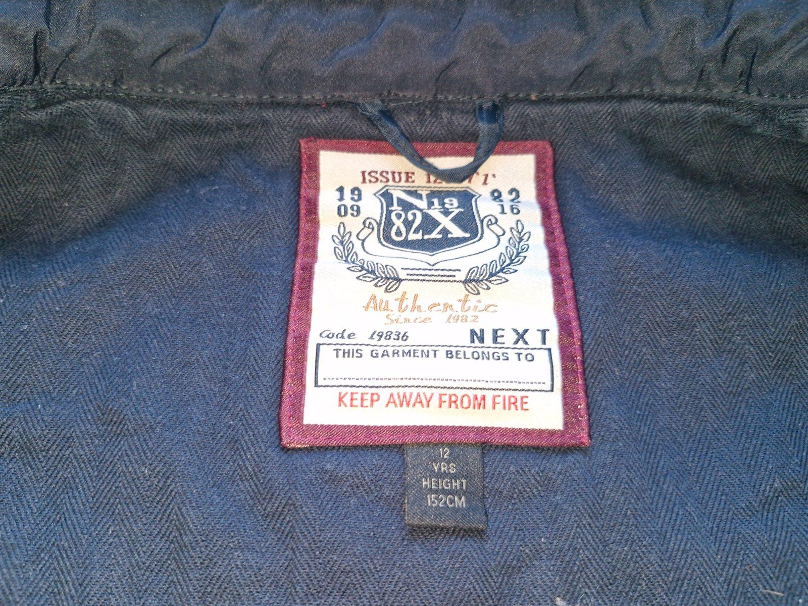 Predám nevynosenu tmavomodru riflovku z pevnejšieho materiálu a farebnú košeľu zn. NEXT č. 152.Širka bundy je 47, dĺžka 57 a rukáv od krku 70 CM.