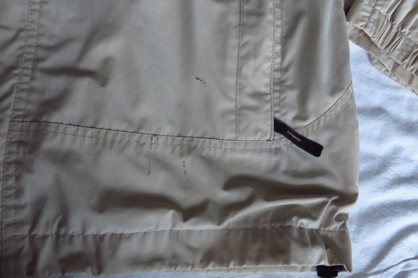 Predám pánsku krémovú bundu na prechodné obdobie. Kapucňa je skovaná, veľ. 56, takže také XL. Miery sú: celková dĺžka 79 cm, šírka 66cm, rukáv od krku je 84 cm. Vo vnútri má po každej strane vrecká. Vo vnútri je sieťka, takže bunda dobre odvetráva, má pár fľakov, ktoré sú nafotené. táto skutočnosť je zohľadnená v cene.