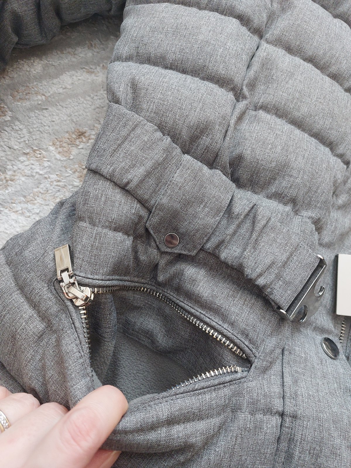 Zapínanie na zips aj gombíky + opasok.