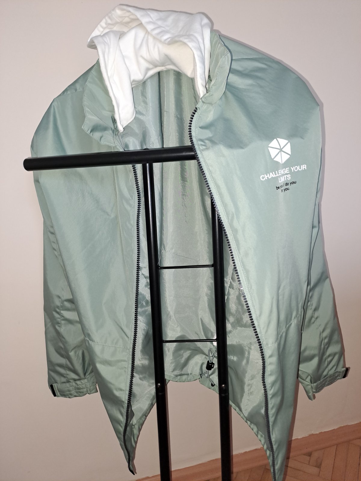 Predam peknu nosenu vetrovku. Nie je natrhnuta, len zo zadu som si pri foteni vsimla bledsie flaky-vid foto. Nie je to velmi vidiet. Inak je bez inych poskodeni. Kapuca sa da zlozit.