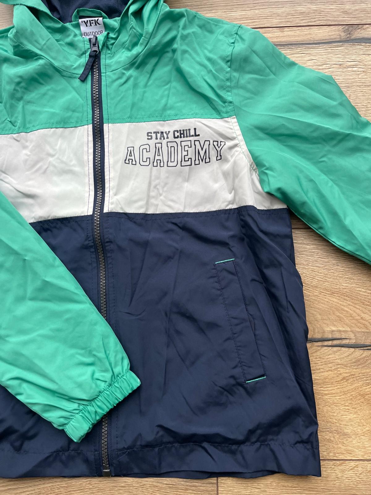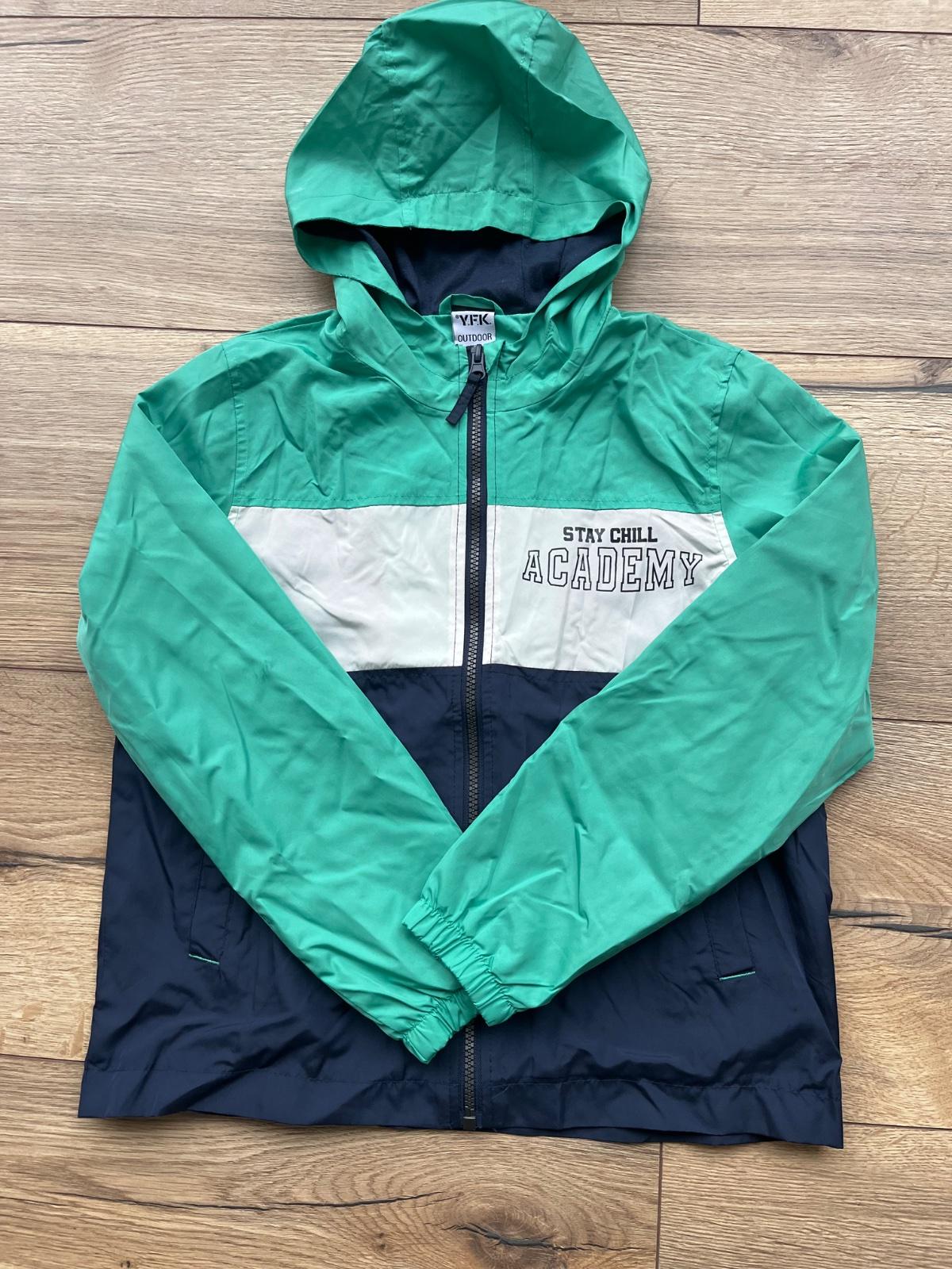 Predám vetrovku s kapucňou podšitu tenkou bavlnou - veľkosť 134/140 - oblečená pár x do školy v super stave akurát na jednom lakti malinká šmuha