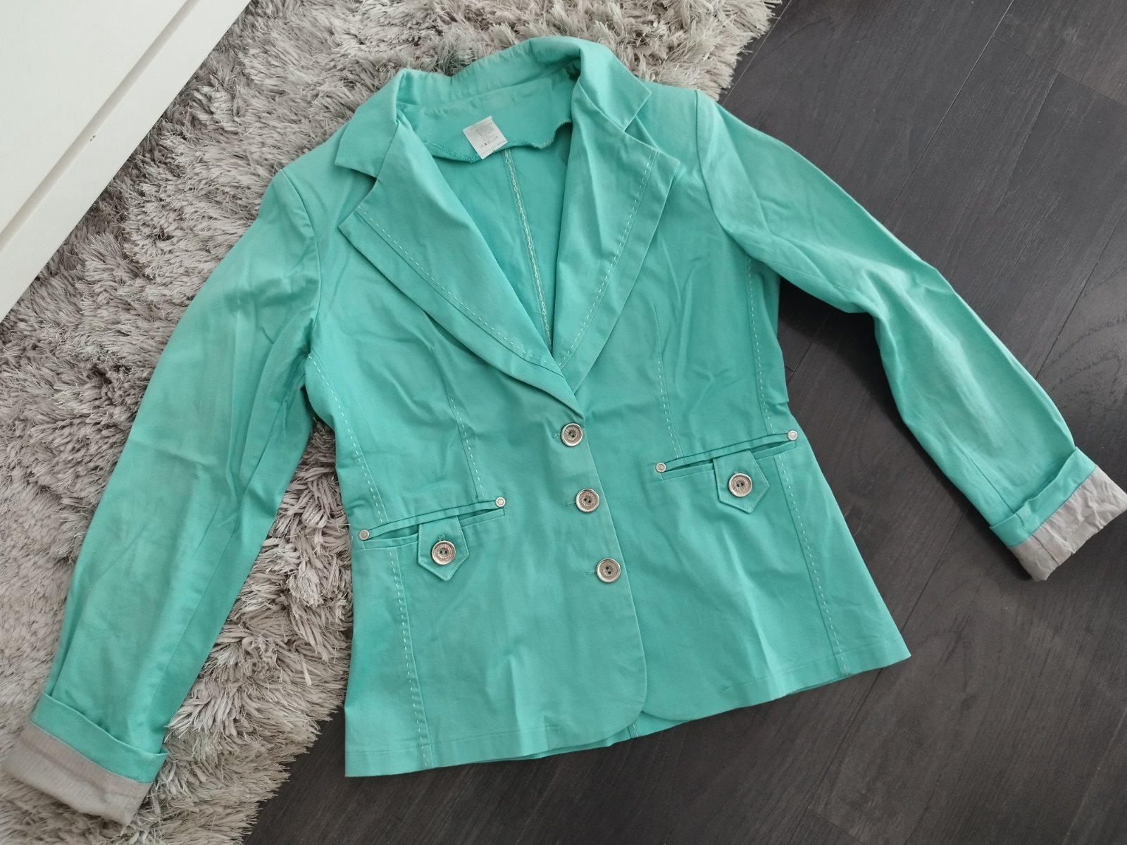 Nosené len v lete pár krát, výborný stav, ako nové bez poškodení. Je len malé tak preto posúvam ďalej. Ideálne od jari do jesene na tričko k rifliam alebo na šaty. Sako stálo nové cez 48 €.