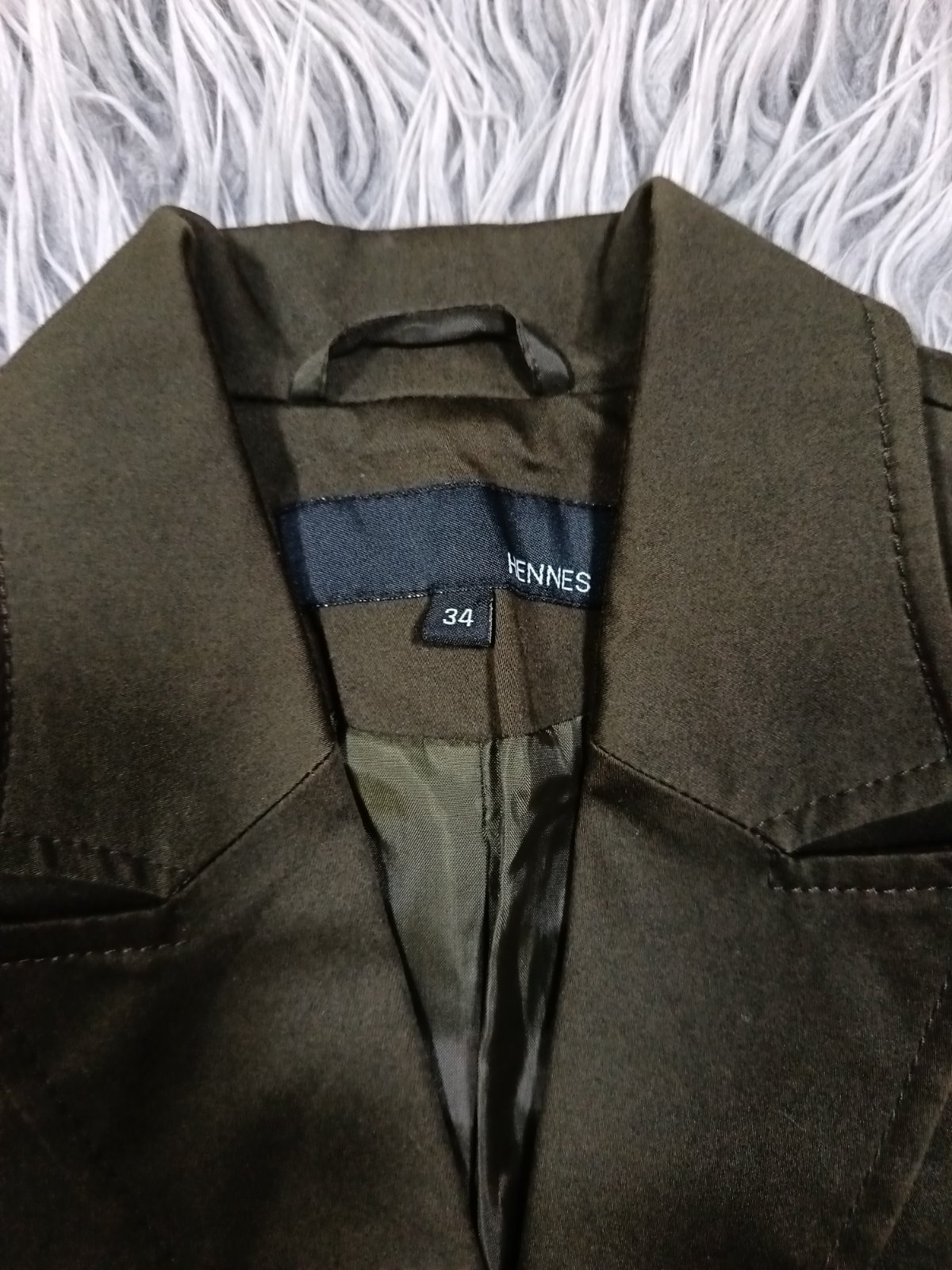 krásne prepracované sako na bežné nosenie,veľkosť 34(čo aj sedí),pekne sedí na postave nosené,no bez fľakov či iných poškodení farba tmavozelená až khaki