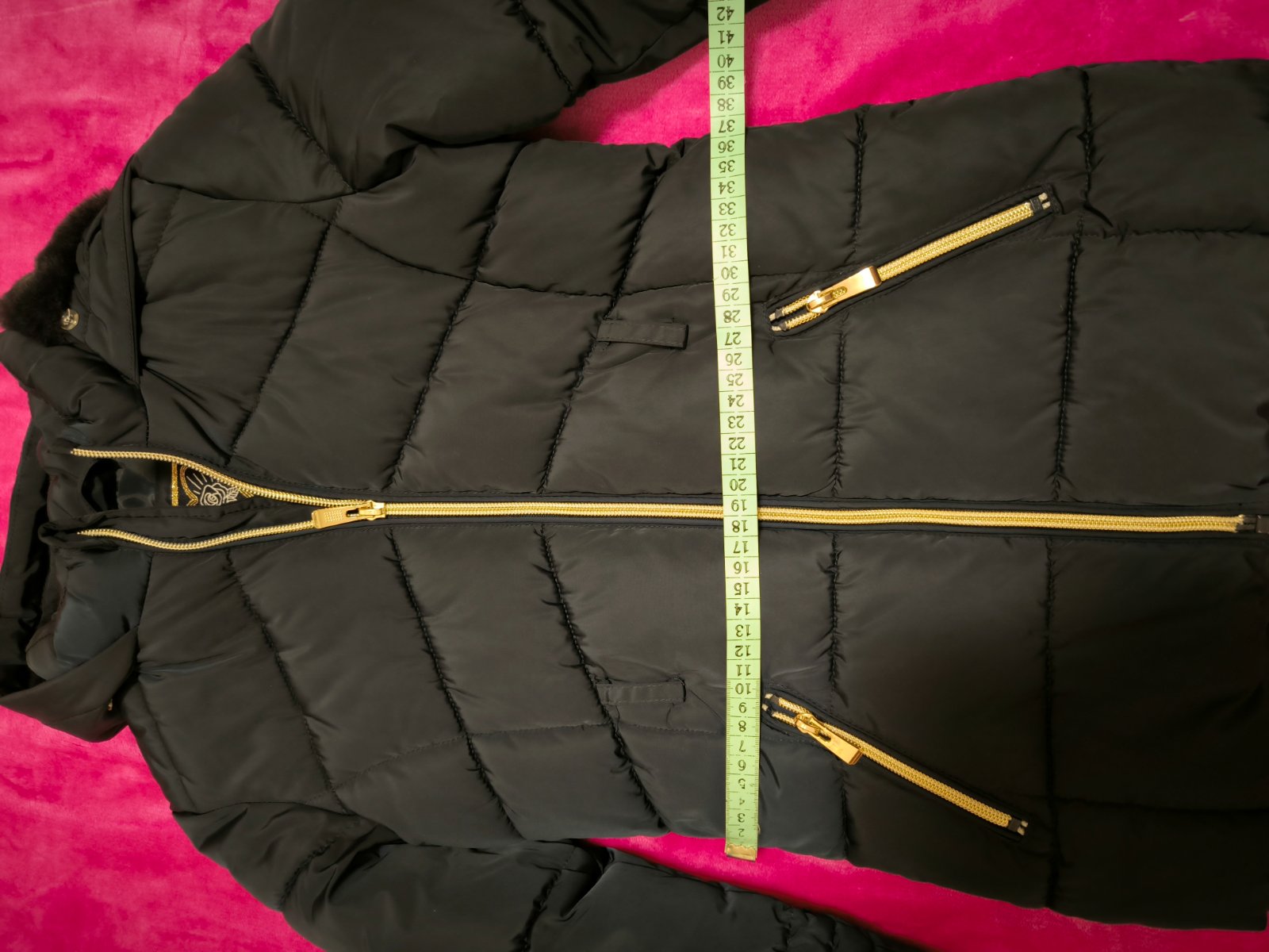 Jednu sezónu nosená veľmi teplá zimná bunda, celá podšitá kožušinou. Predĺžený strih, kapucňa, bez poškodenia. Podľa potreby premeriam. Tmavomodrá až čierna farba. Top stav. Neskutočne sedí.