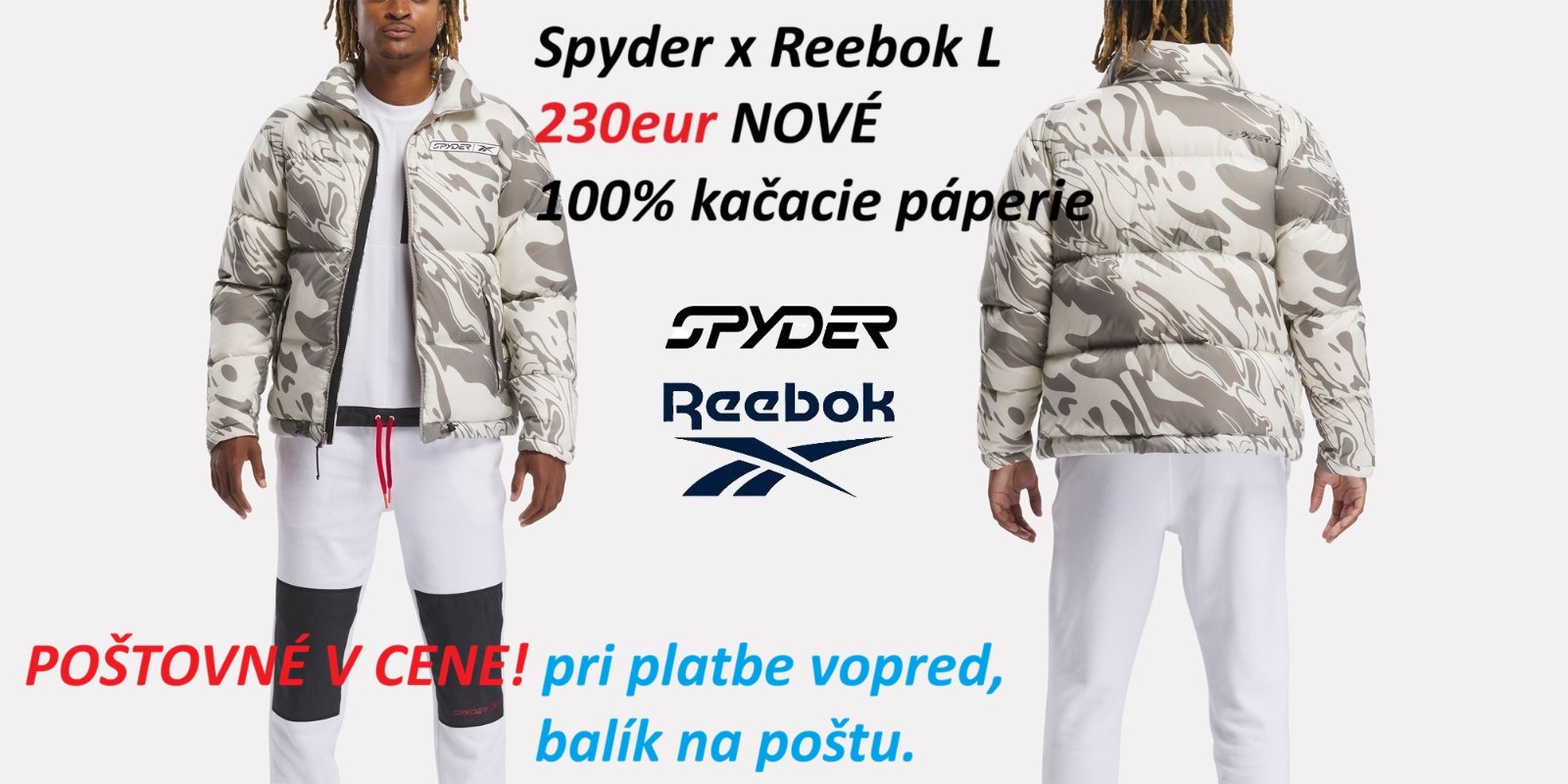 Ďalej predám unisex zimnú páperovú bundu, kolaborácia Spyder x Reebok, veľkosť L. Farba biela-strakatá. Bunda je z tkaného 100% recyklovaného polyesteru, v tomto prípade je to odolný vodoodpudivý materiál DWR (Durable Water Repellent). Výplň: 100% kačacie páperie (700 Fill). 3D logo našité vpredu na ľavej strane a tlačené vzadu na pravej strane. Vrecká na ruky na zips a lem nastaviteľný sťahovacou šnúrkou. Bunda je nová. Cena 230eur.