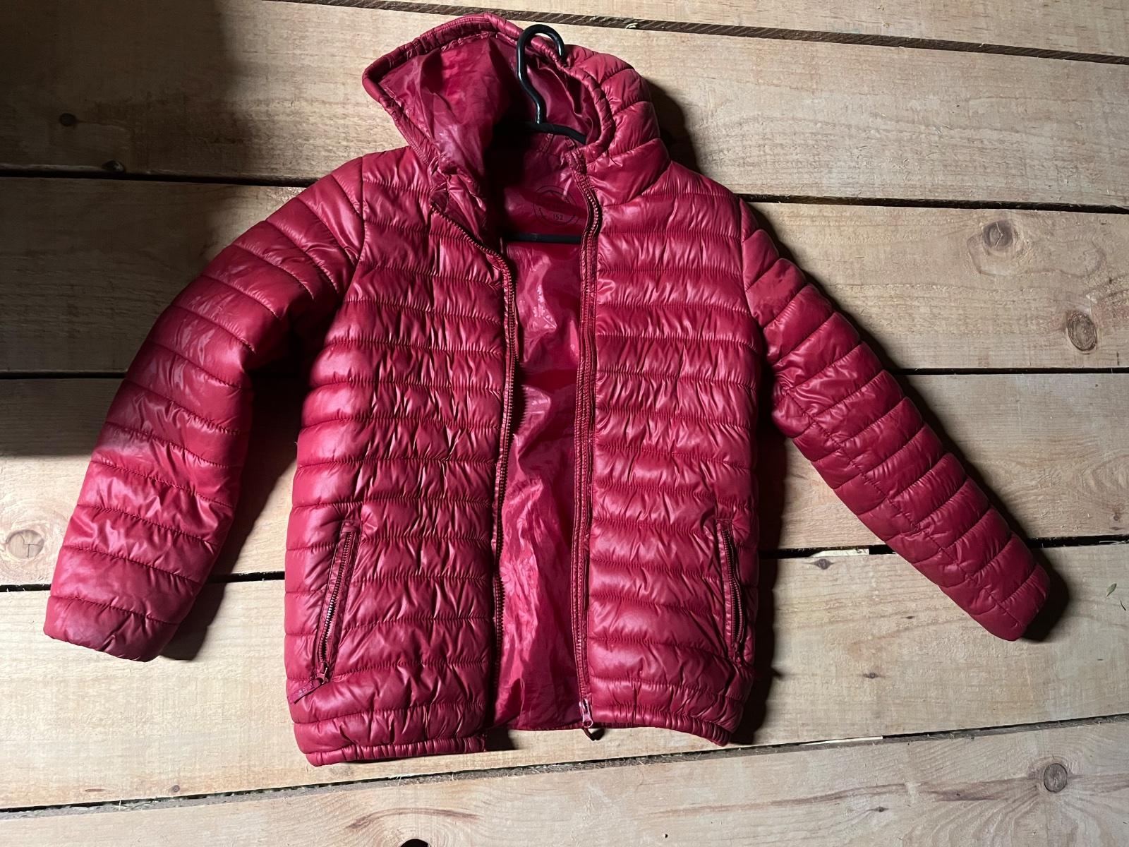 Červená a zelená zimná bunda-spolu predaj. Zachovalé, máli nosené, bez poškodení.