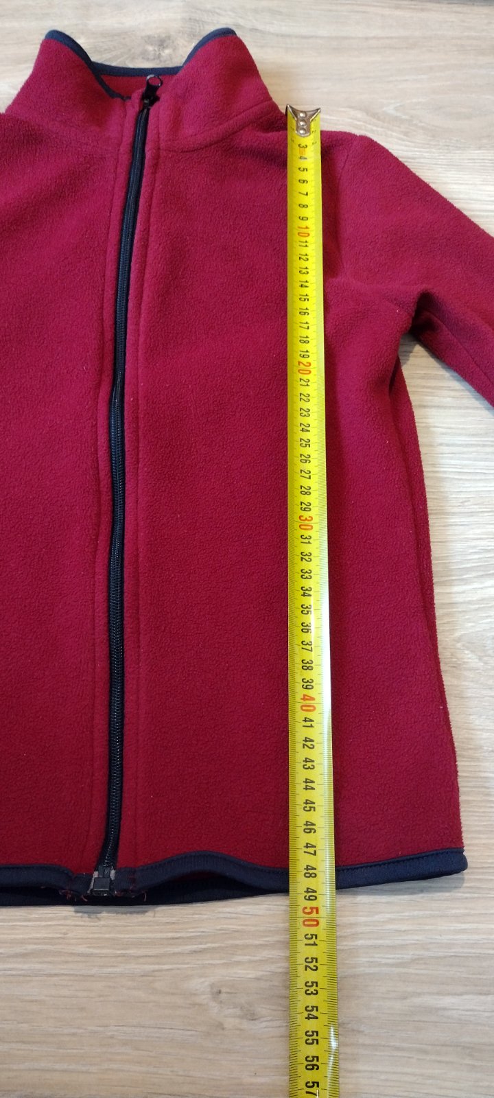 Fleece mikina vo veľmi dobrom stave. Veľkosť 128, rozmery sú na foto.