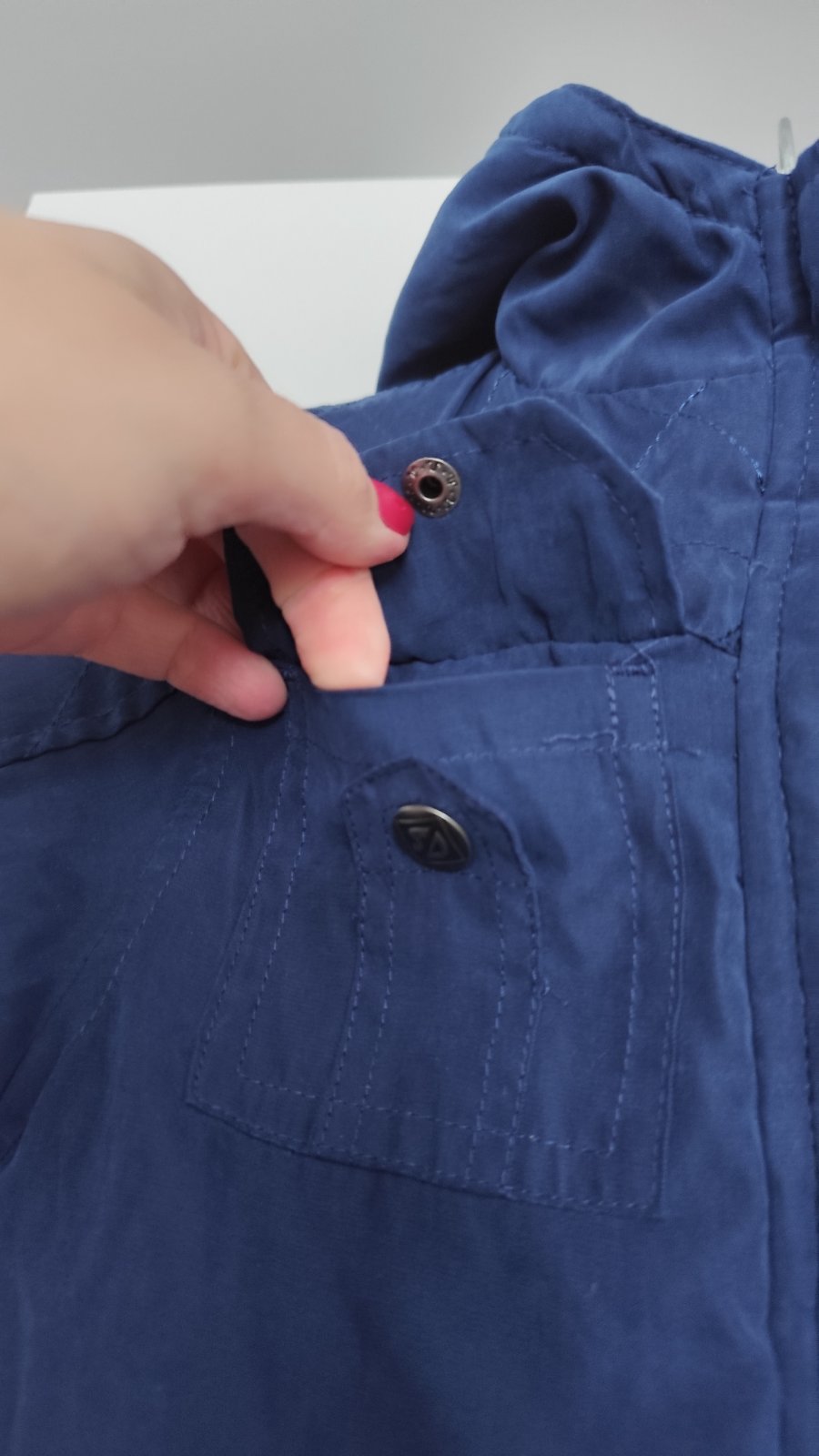 Zapínanie na zips a cvoky. Rukáve nie sú na gumičku, ale na cvoky.
