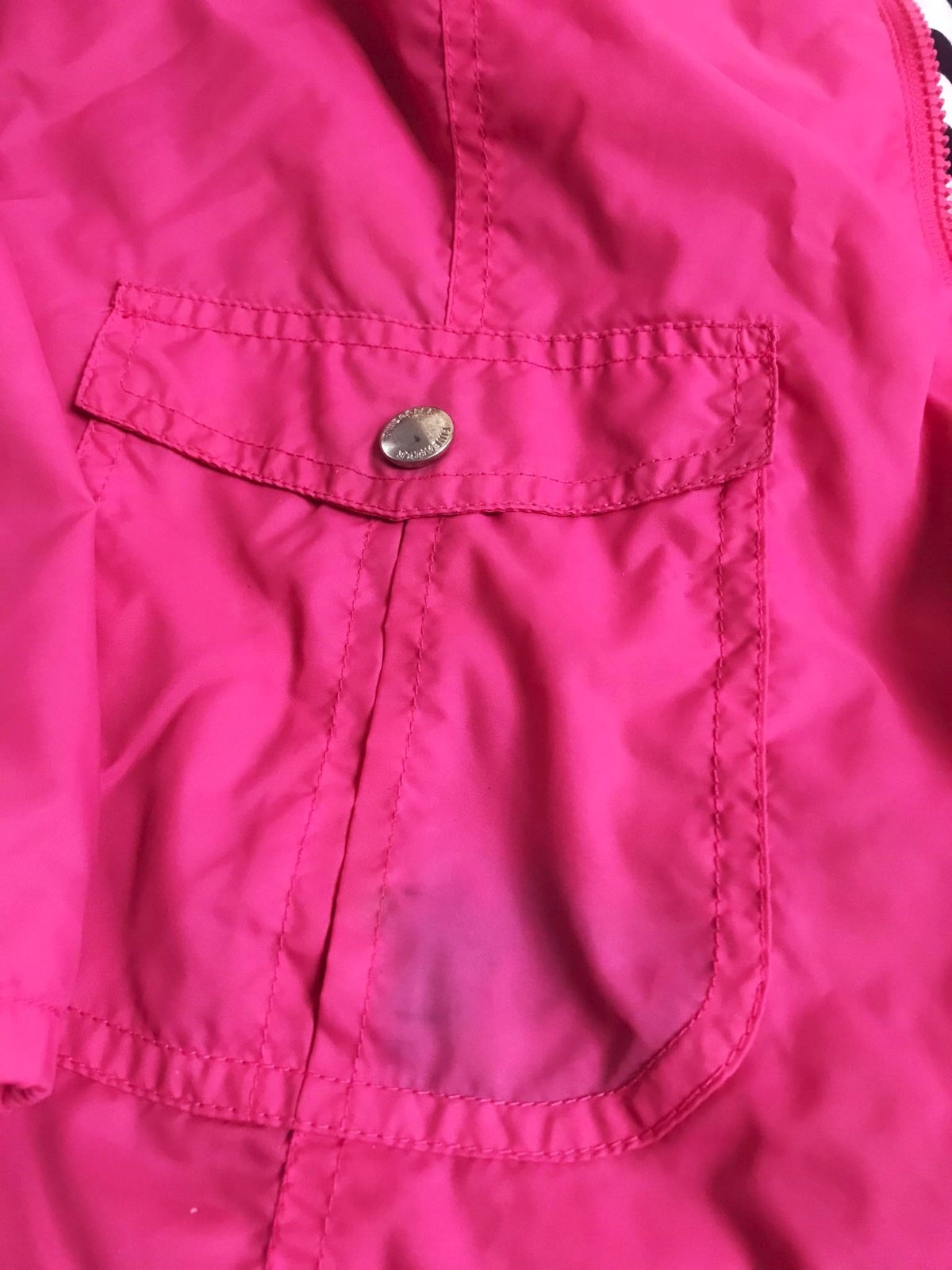 kvalitná,skladná a ľahúčka bunda,podšitá prúžkovanou tričkovinou,pekne princesovo štepaná,vzadu gumička pre pekné vytvarovanie postavy,jediná chybička je,že na vrecku na spodku je malý flek - viď posl. foto,nie je to veľmi vidieť,ale upozorňujem,v prípade sa tam dá našiť malá nášivka - ale mne to nevadilo,zrejme pustilo farbu niečo, čo bolo vo vrecku dlžka od pazuchy dole = 40 cm, rukáv = 64 cm,ramená = 11 cm,dnu je ešte kvalitná bavlnená podšívka ( tričkovina ) takže zvnútra je to o málo užšie....