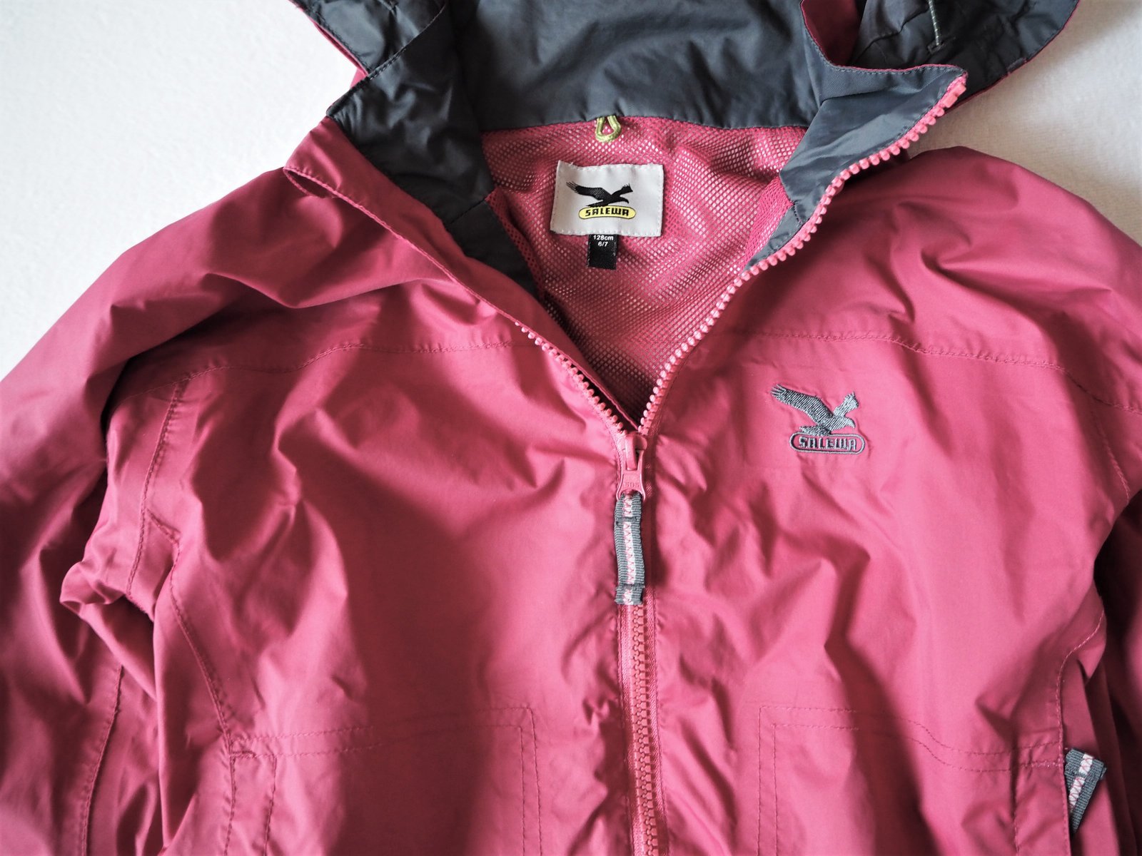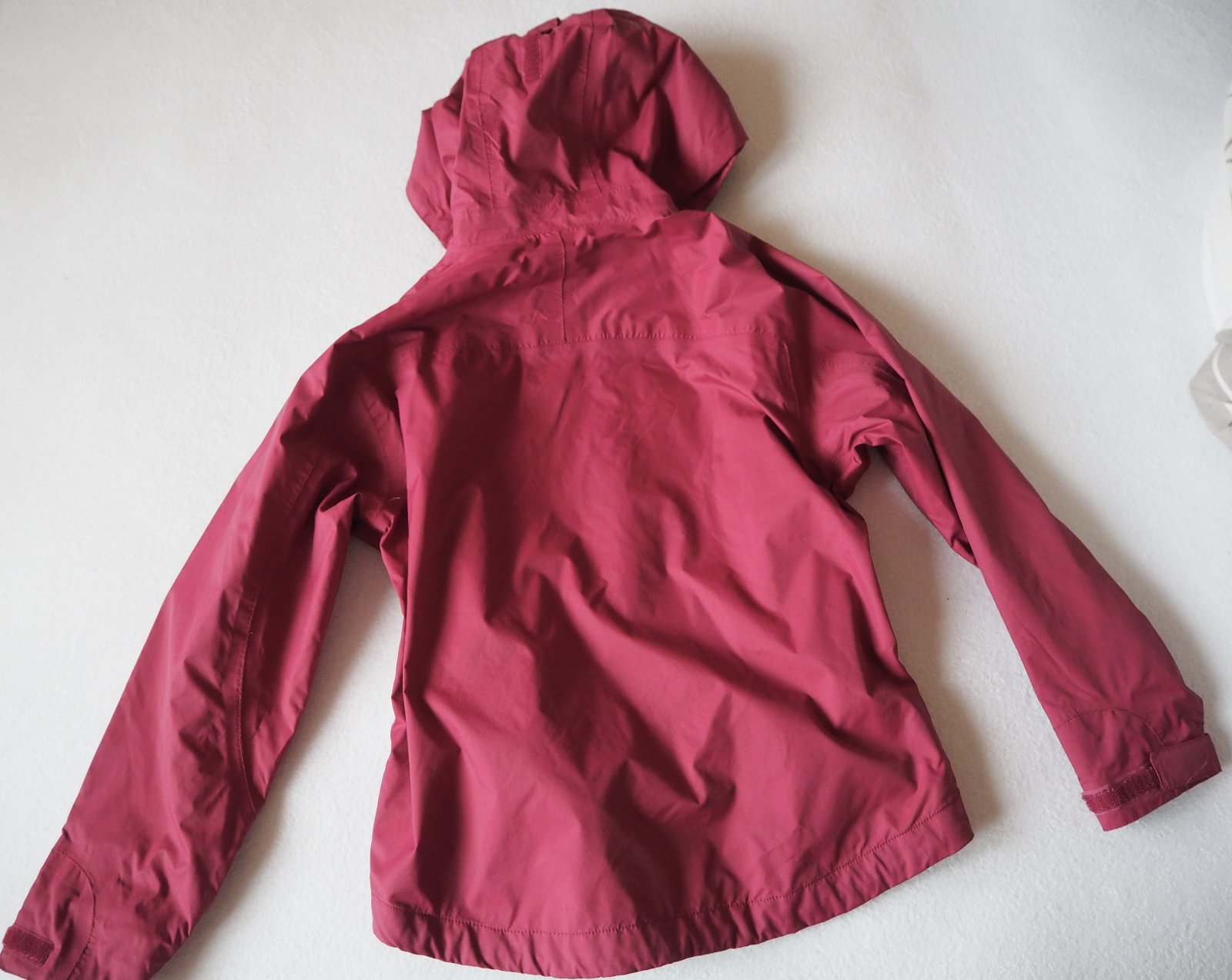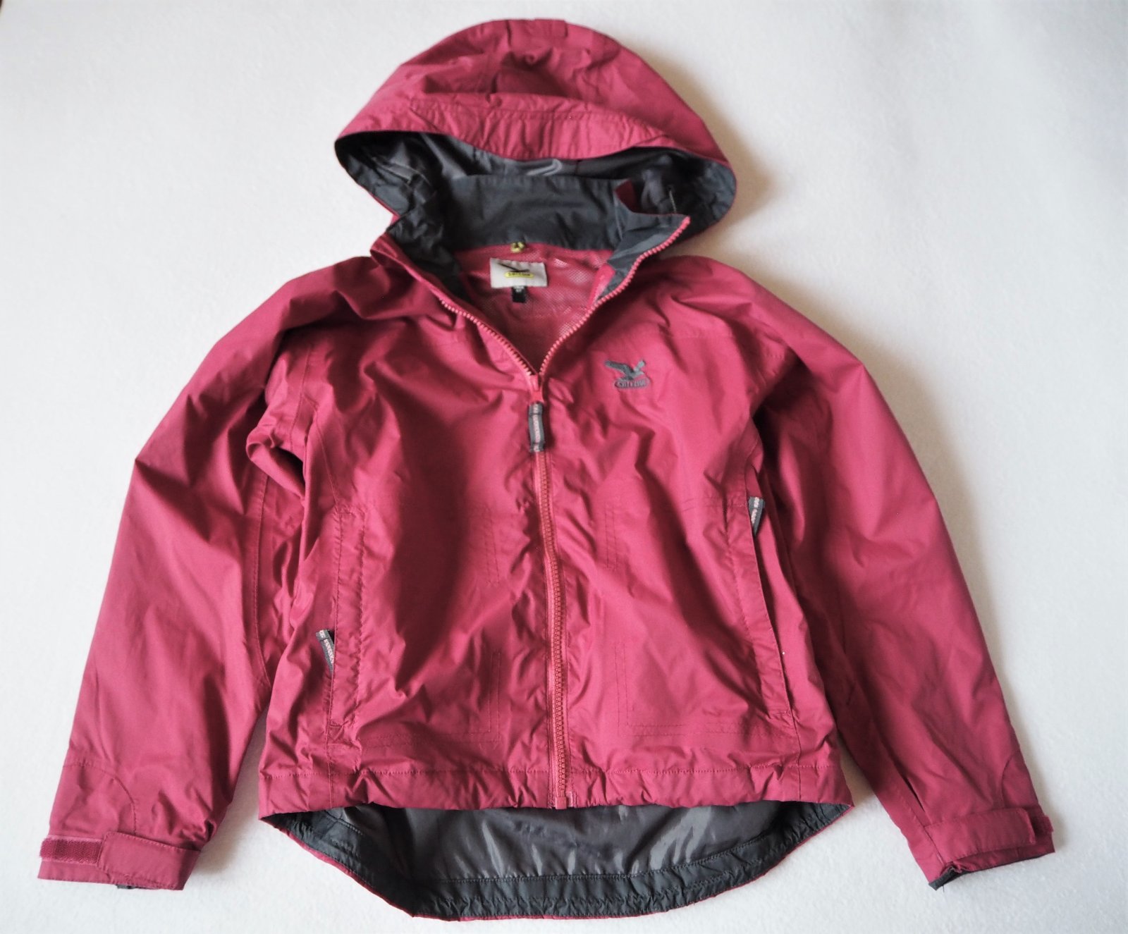 predám turistickú bundu bez fľakov a poškodení, farba je ako na obrázku, neprefúka, odolá miernemu dažďu, zipsy všetky funkčné, rukávy sa dajú stiahnuť na suchý zips, kapuca na pevno, veľkostne sme nosili 122/128 odporúčam! boli sme s bundou spokojní, vhodná na jar,jeseň