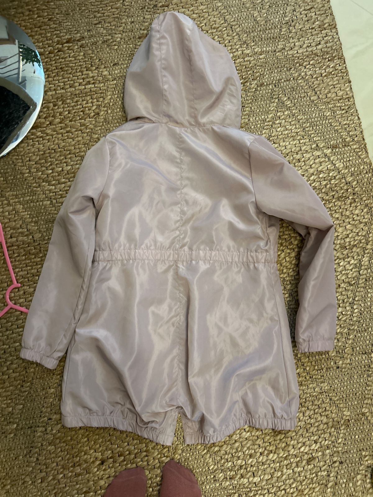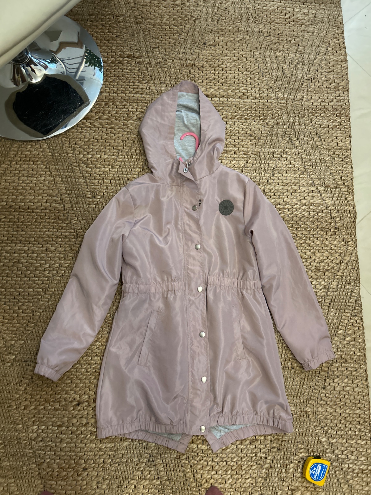 Krásny pláštik na prechodne obdobie, podšity bavlnenou látkou. Dĺžka vzadu 77cm, vpredu 71, rukáv 54, hrudník 45cm. Pár krát oblečený len do kostola.