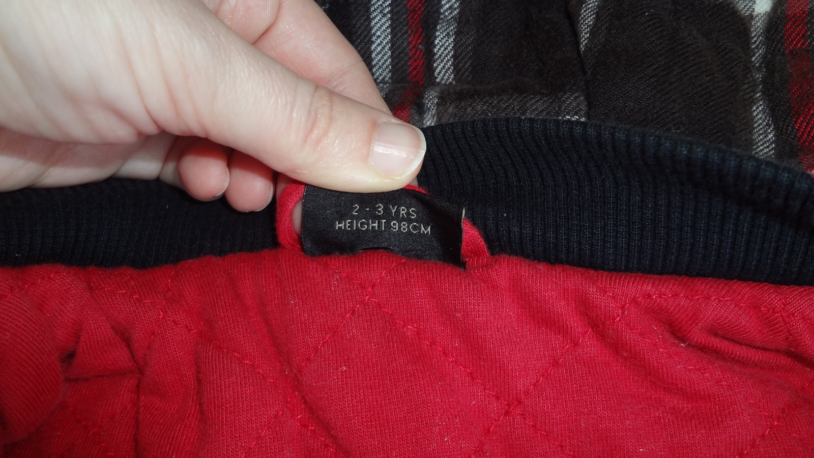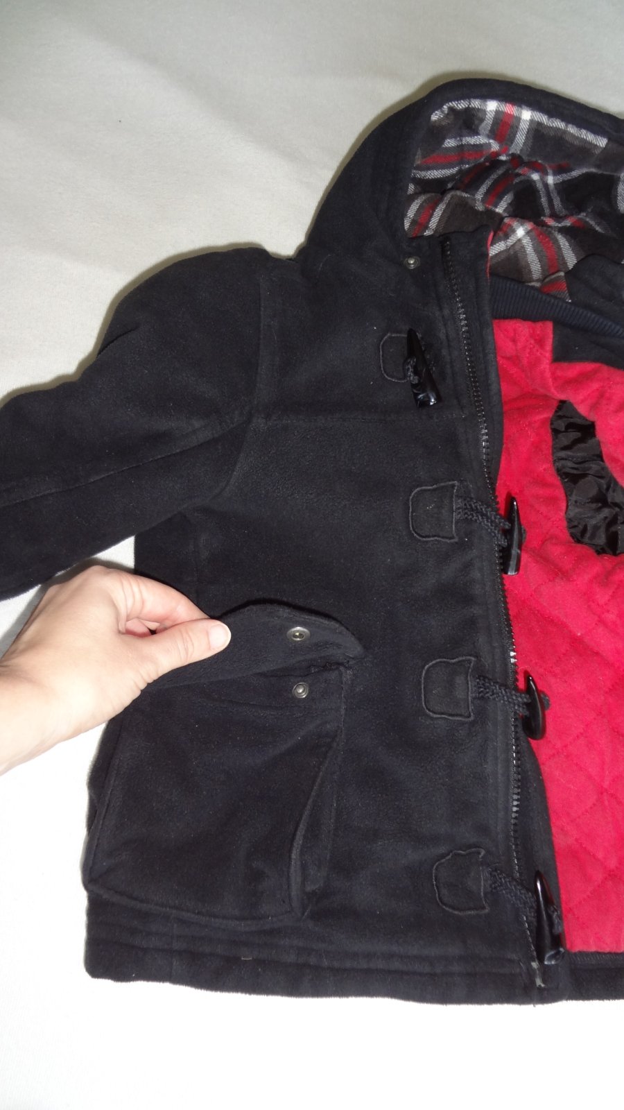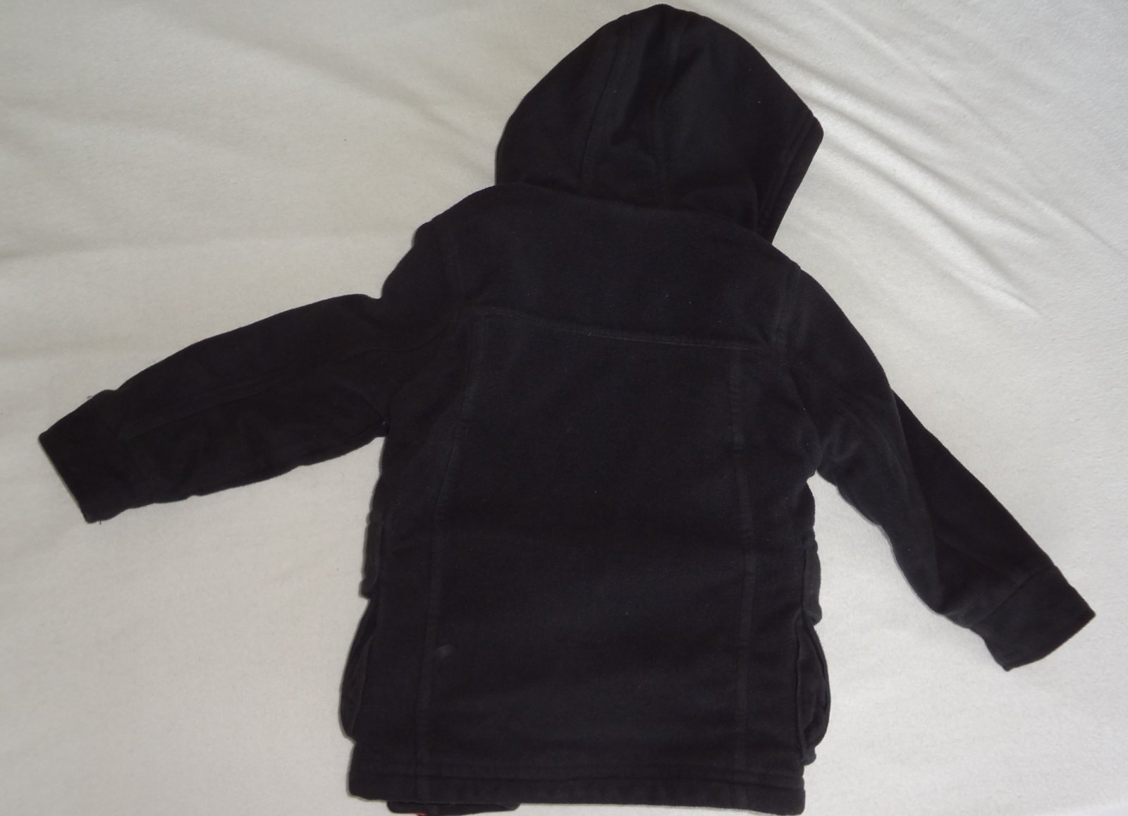 Teplý kabátik. Vrchný gombík zlomený, ale nosili sme to aj tak lebo sa dá normálne zapnúť do toho putka. Inak ok. Vek uvedený 12-18 mesiacov, ale určite väčší. Syn ho nosil ako 2 aj 3 ročný.