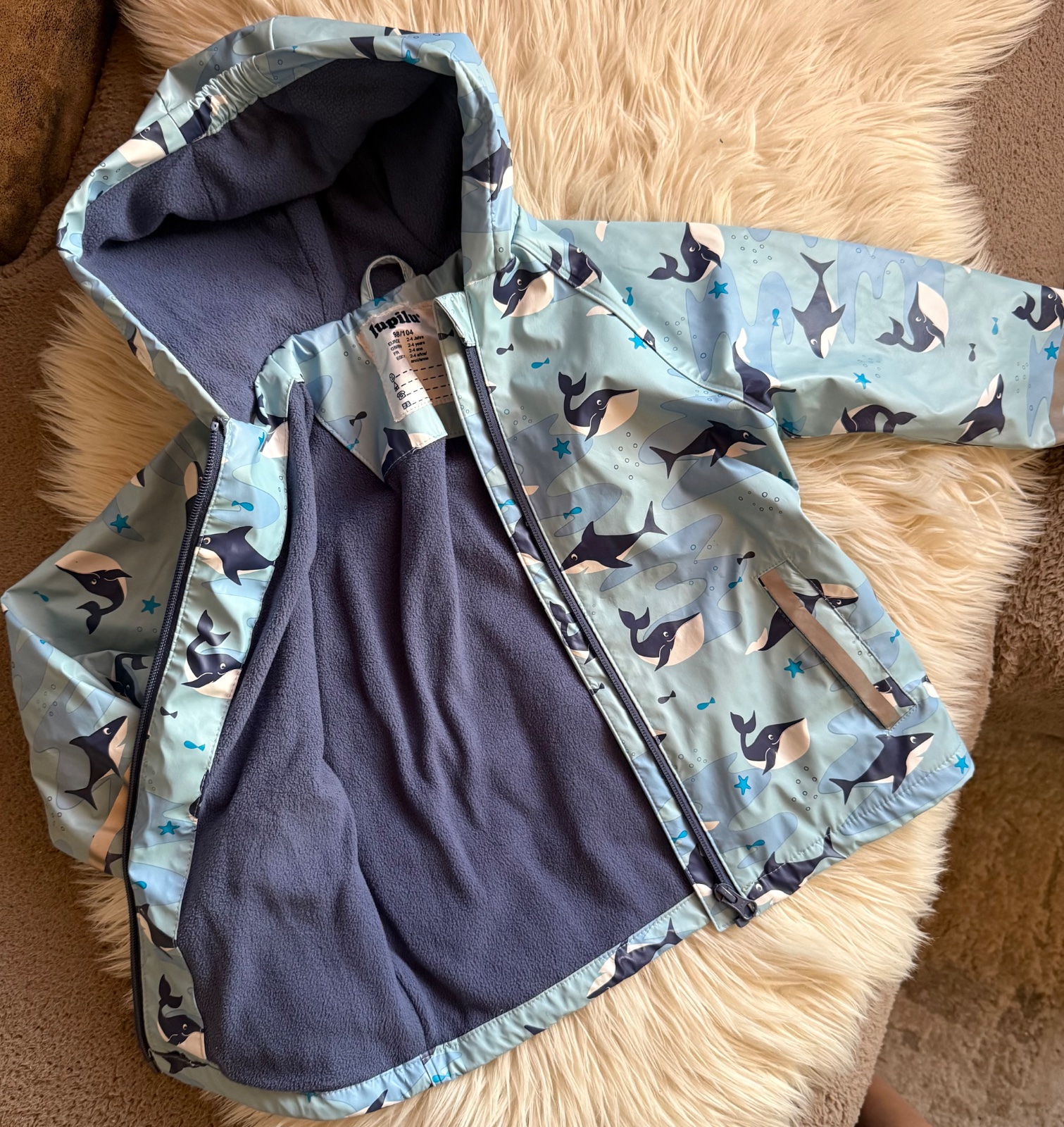 Nepremokavá Bunda z vnútra zateplená flisom . Velkost 104