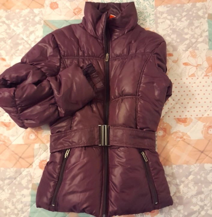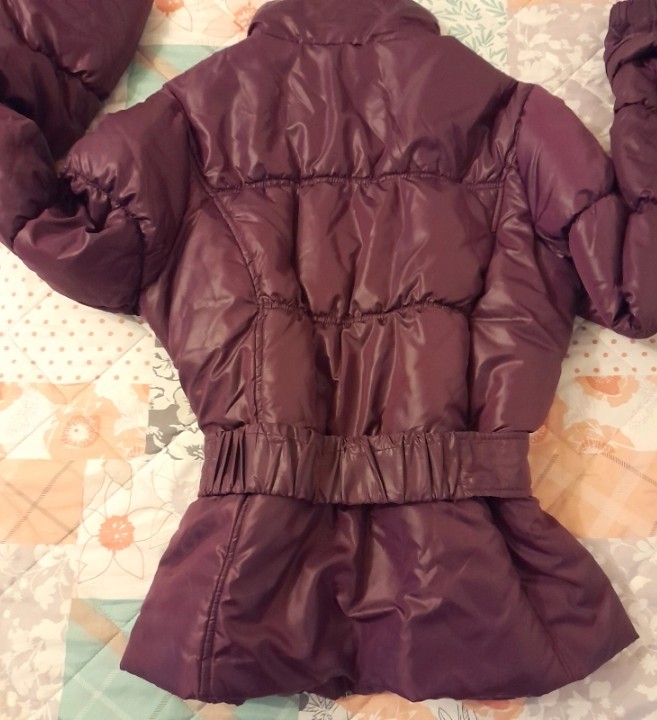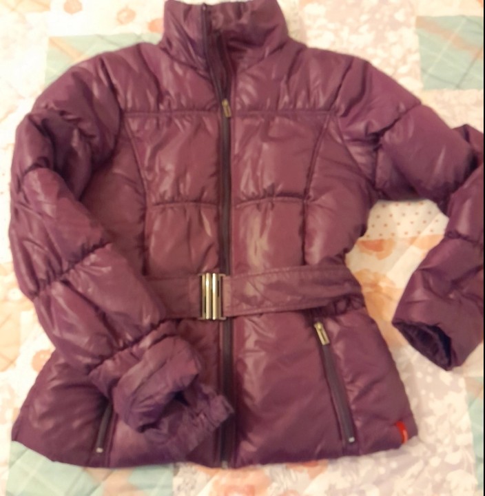 Zimná bunda veľkosť M, ale oblečie aj L. Tepla, s opaskom aj bez neho. Pekne vytvaruje postavu.