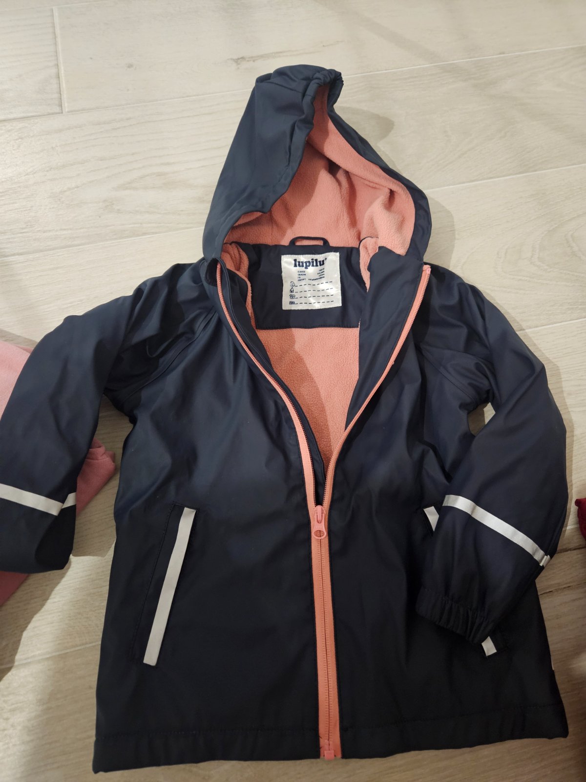 Na predaj dievčenská podšitá bunda Lupilu 110/116. Reflexné prvky, trojdielna kapucňa, vrecká, farba tmavomodrá. Cena 8€+pošta, možný osobný odber KE Juh