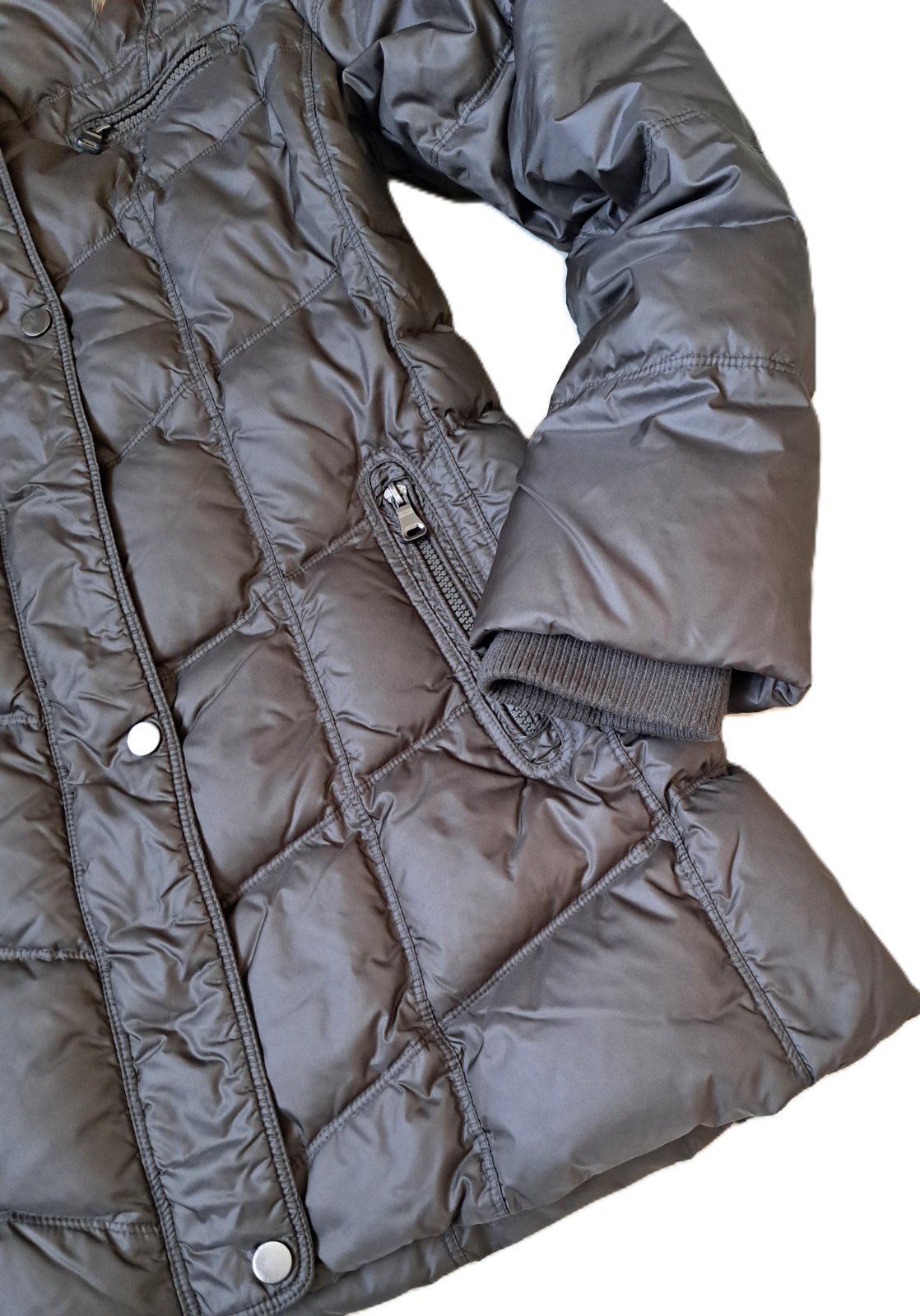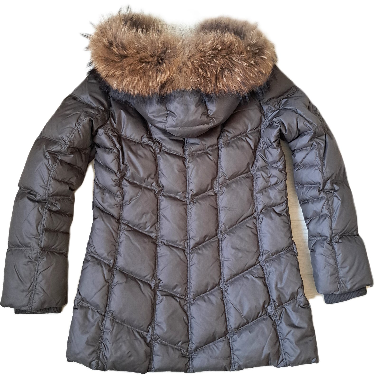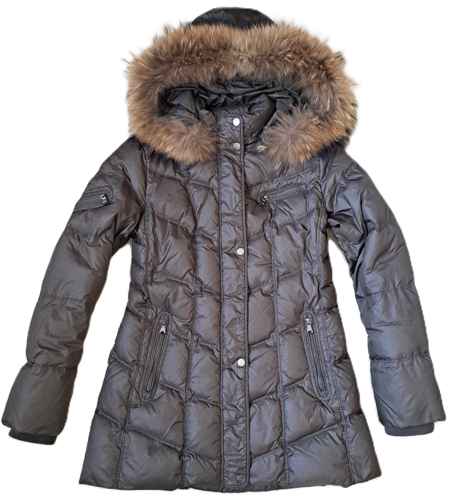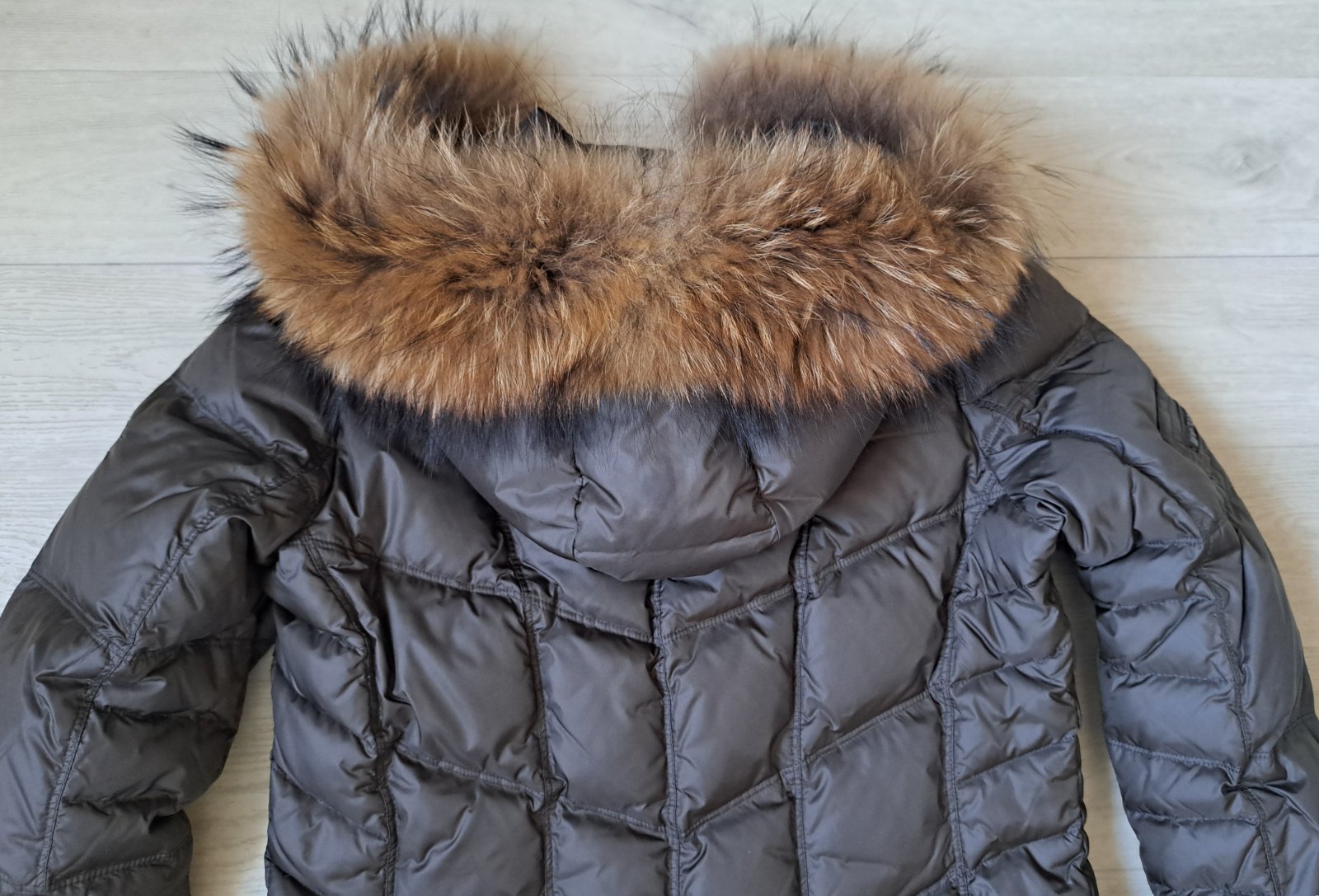 Dámska luxusná bunda Saki - bola nosená, no je v super stave, bez poškodení. Veľkosť je uvedená 40, čo aj zodpovedá. Sadne ako väčšie M, menšie L. Jedná sa o kvalitnú švédsku značku, PC bola veľmi vysoká. Bunda je páperová, krásnej hnedej farby s masívnou, pravou kožušinkou. Je mierne predĺžená, v páse zúžená. Vrchný materiál je jemnučký, je vzdušná a veľmi teplá. Vzadu je na jednom mieste trochu zatiahnutá nitka.