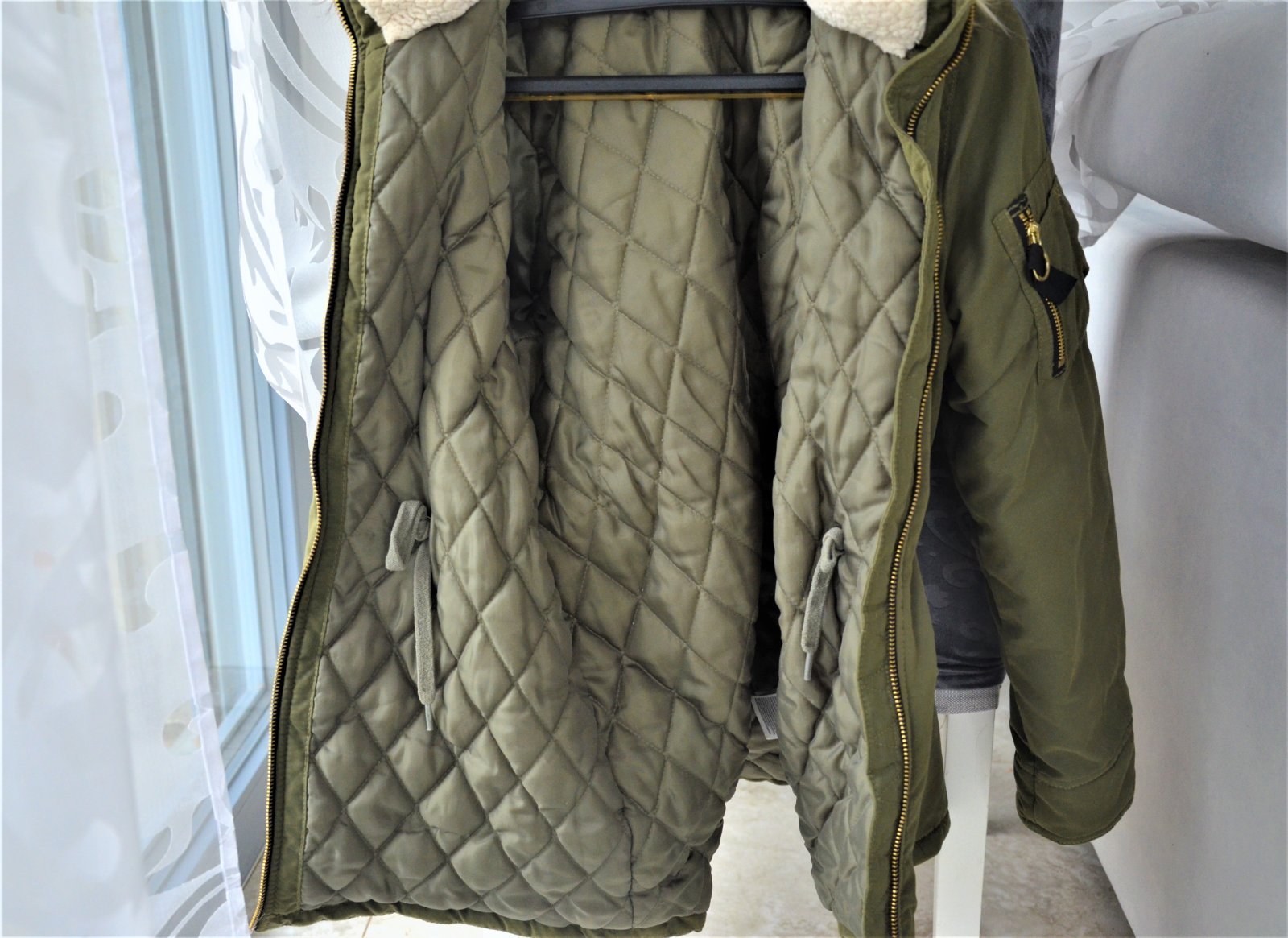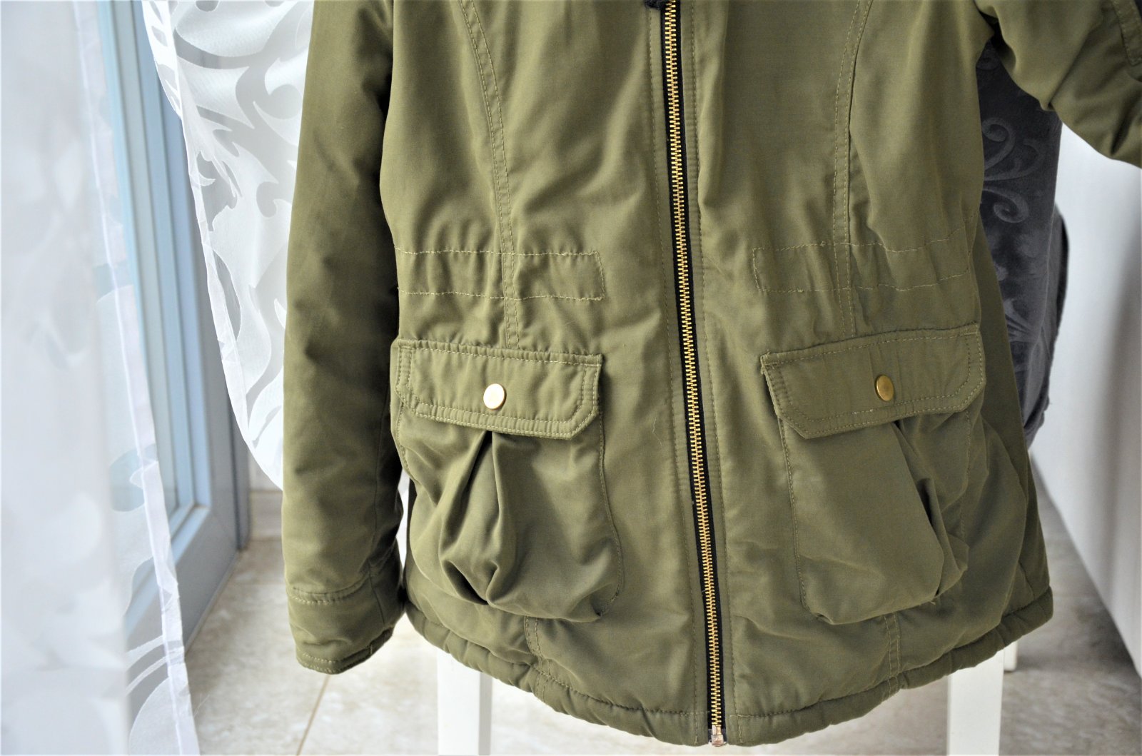 bunda je nosená,teplá,všetky detailné foto sú priložené,dĺžka 70cm,šírka pod pazuchami 2x 46cm,šírka dole 51cm,rukáv od ramena 57cm,kapucňa odopínateľná...kuk aj na iné moje inzeráty