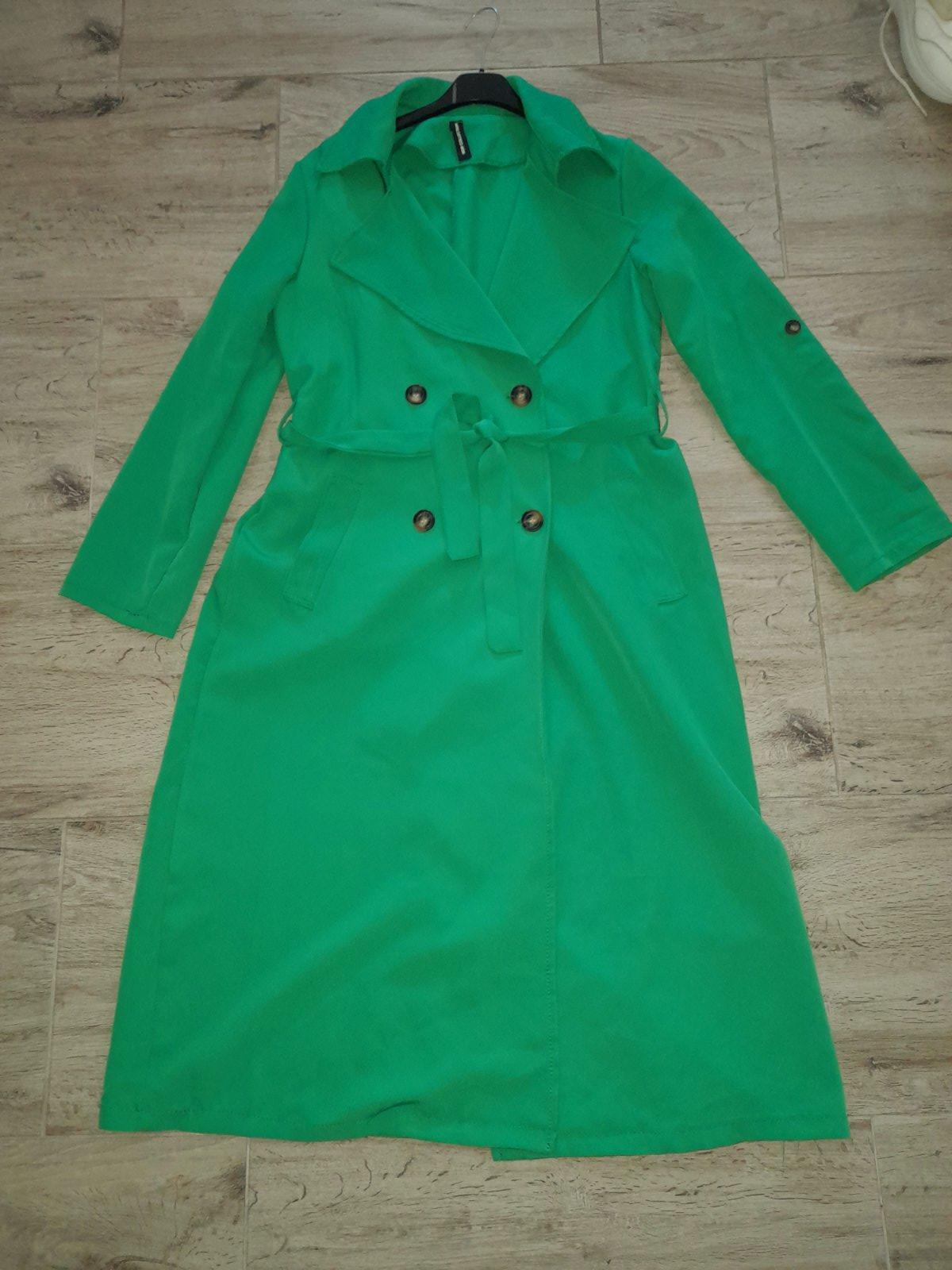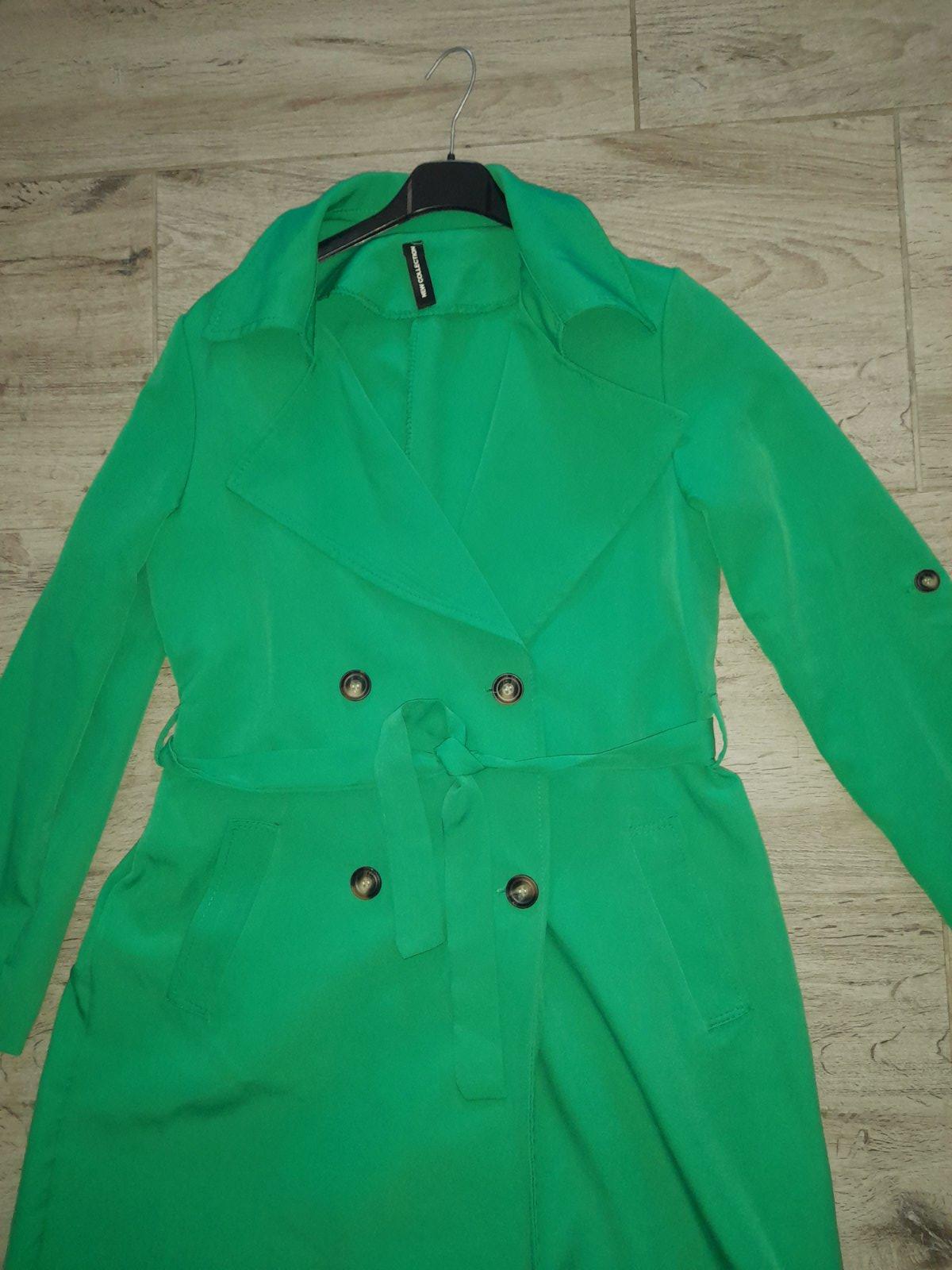 Predám krásny trenckot,noseny,v super stave. Nepodsity,tenký materiál. Rukávy sa dajú vyhnúť a zapnúť gombíkom. Veľkosť nieje uvedená odhadom M. Farba je o niečo tmavšia,výraznejšia zelena,ako na foto.