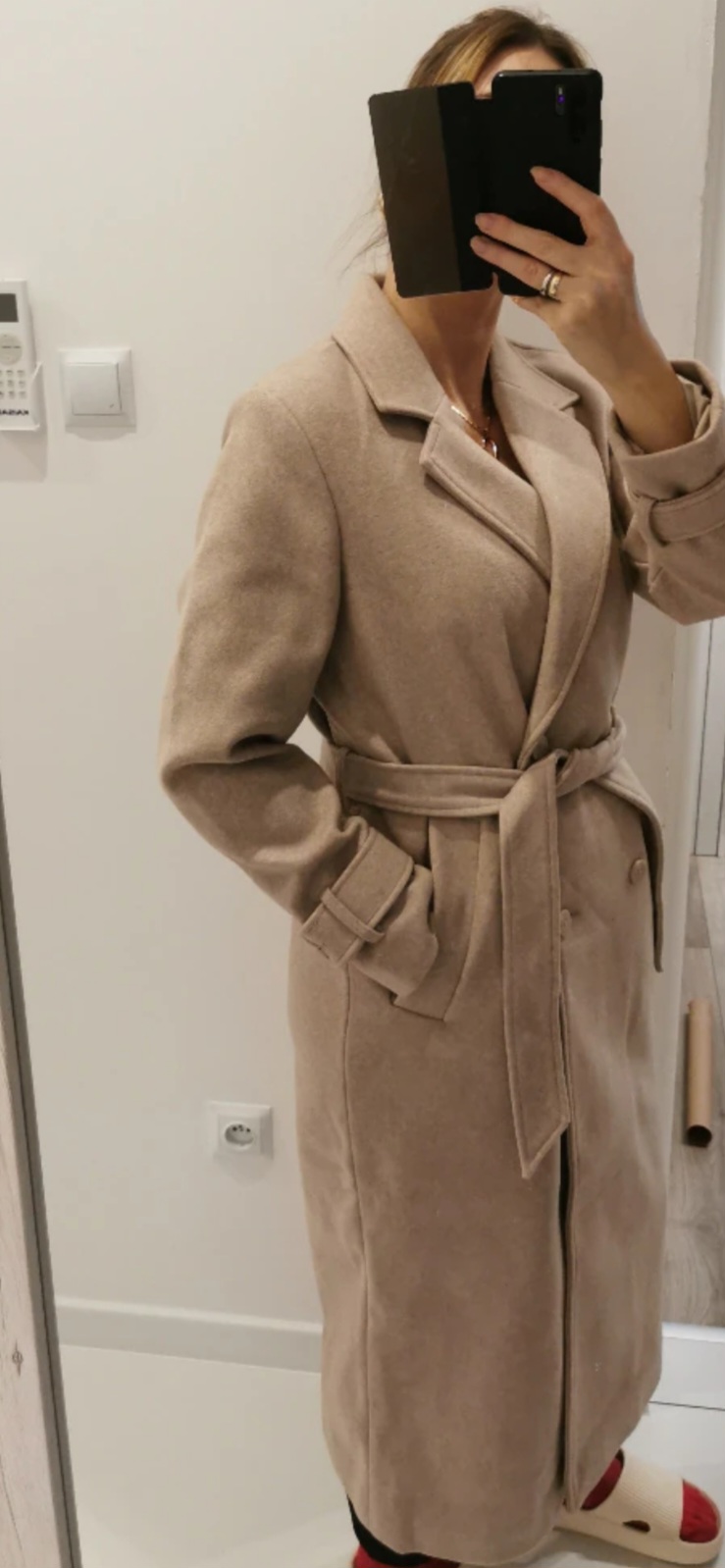 Krasny dlhy kabat s opaskom