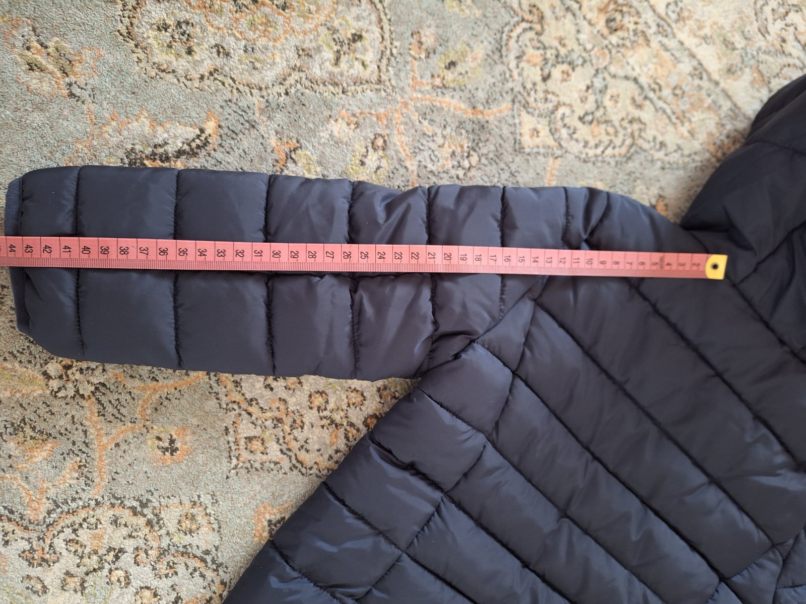 Bunda je nová , dva krát oblečená , nepoškodena, veľ.42, , rozmery dĺžka 67cm, šírka pod pazuchami 55cm, rukáv od pleca 67cm. Nepremokavá. Bunda má aj kapucňu ktorá sa dá pripnúť. Má reflexné prvky...