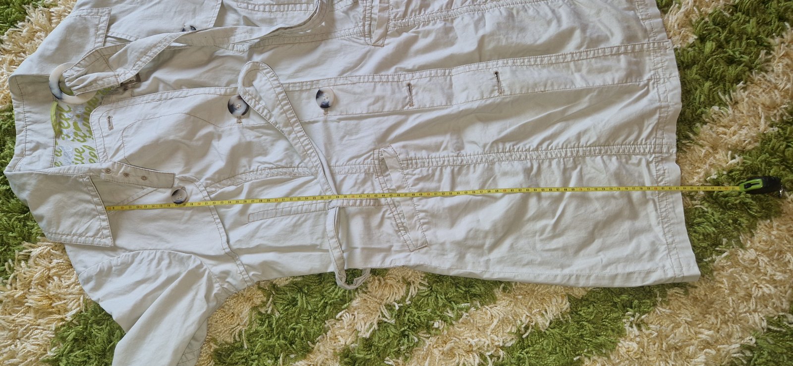 Dá sa nosiť aj ako sako aj ako dlhšia košeľa. na bokoch sú pracky na opasok. je bez poškodenia.