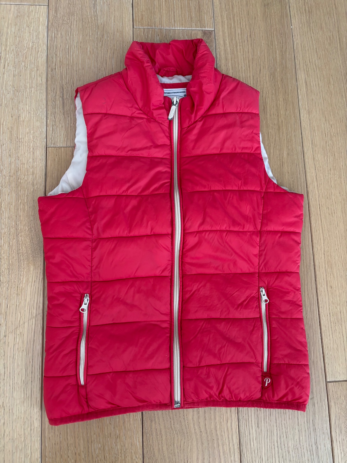 Prekrásna vesta v bezchybnom stave na zips. Vpredu 2 vrecká, vnútri 1menšie vrecko; bez kapucne. Dĺžka 46 CM.