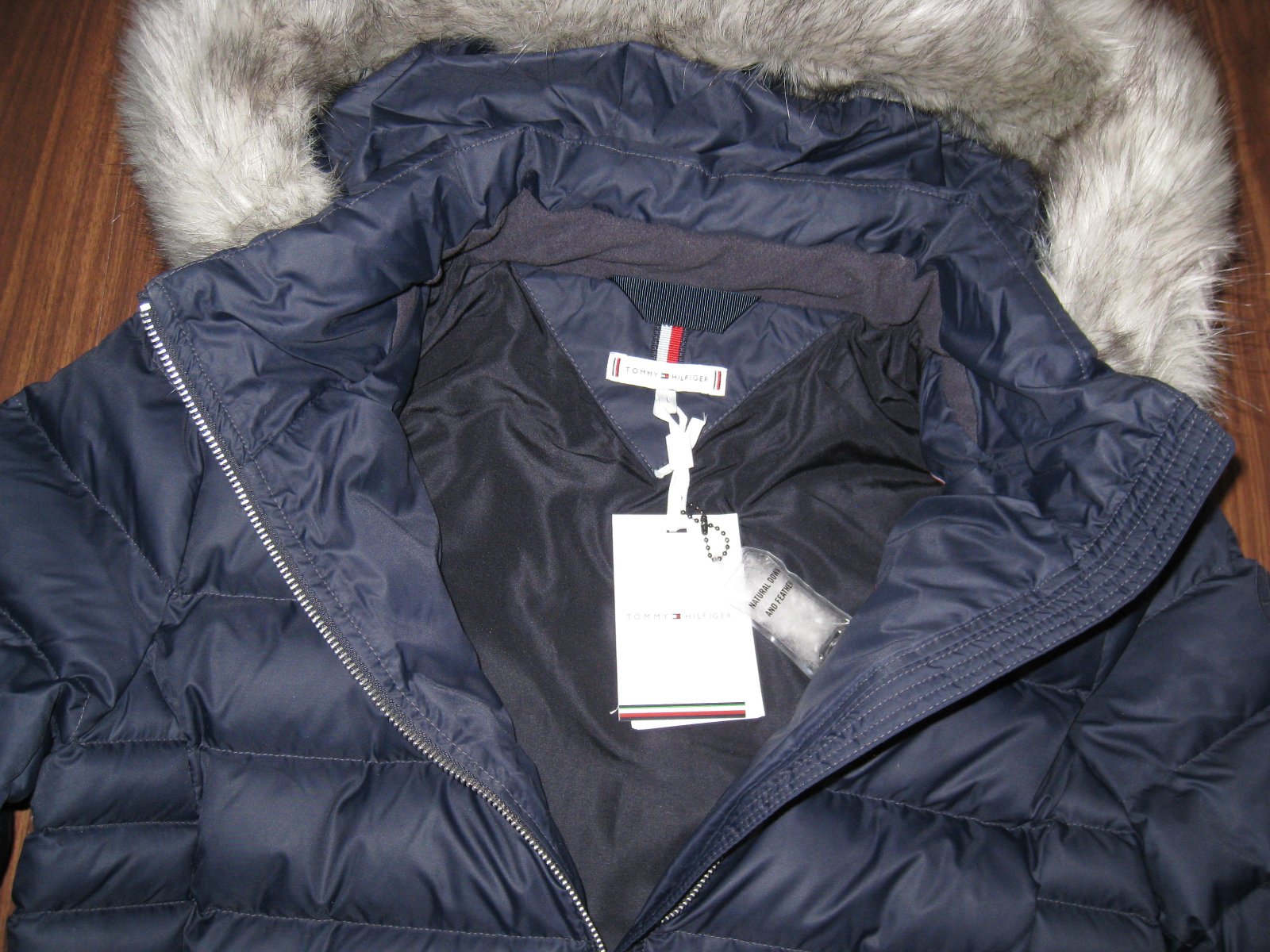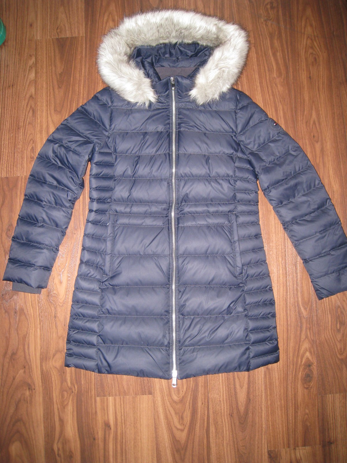 Dámska páperová bunda Tommy Hilfiger (WW0WW39747), veľkosť L/40, nová s visačkou. Rozmery bundy: dĺžka 85 cm, šírka v podpazuší 52 cm, dĺžka rukáva od krku 70 cm a od podpazušia 46 cm.