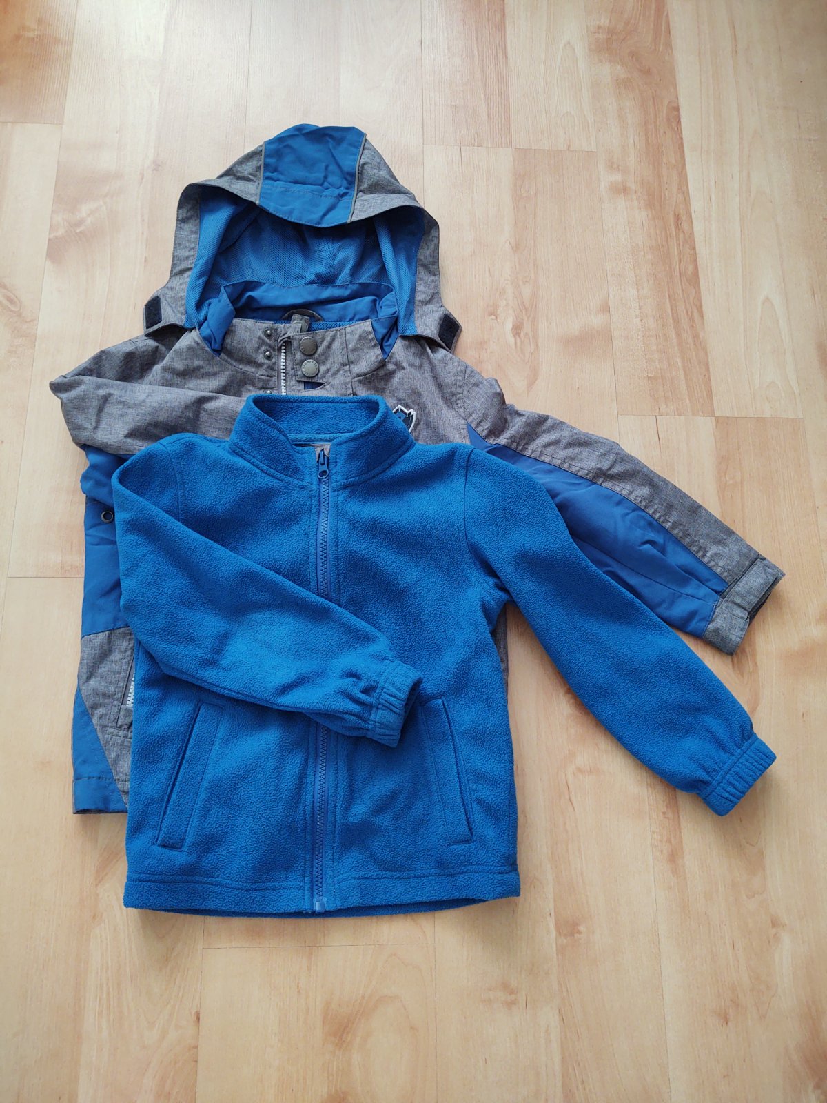 Predám krásnu bundičku na prechodné obdobie s kapucňou. Ide o dve bundičky, ktoré sa dajú nosiť aj osobitne - jarná bunda a mikinka. Do jednej sa zapínajú zipsom. Mikinka má 2 vrecká a vrchná bundička má tiež dve vrecká.