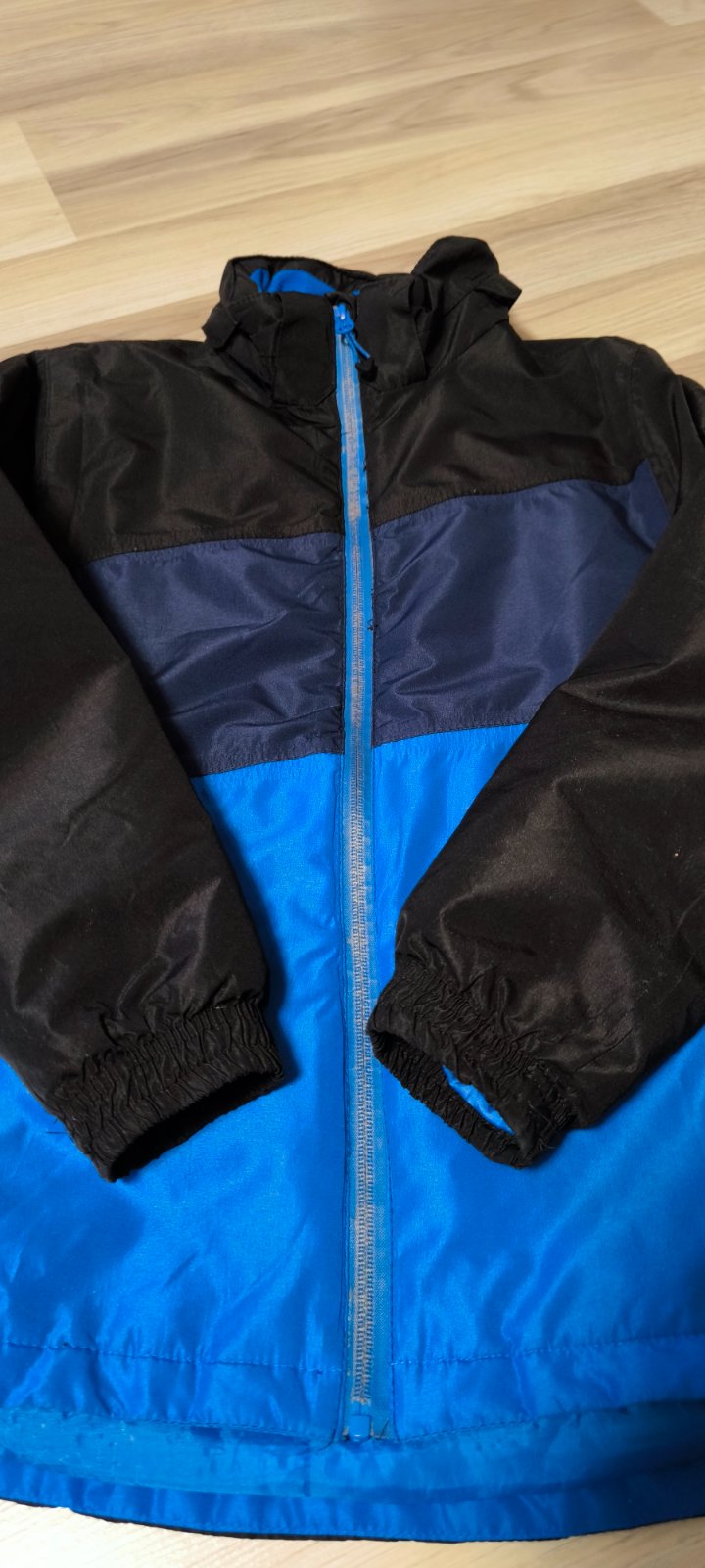Predám nosenú detskú zimnú bundu. Nepoškodená. Veľkosť 146/152. Rozmery šírka pásu 50, dĺžka od ramena 61, dĺžka rukáva od krku 64. Kapucňa odnimatelná. Zips stráca farbu.