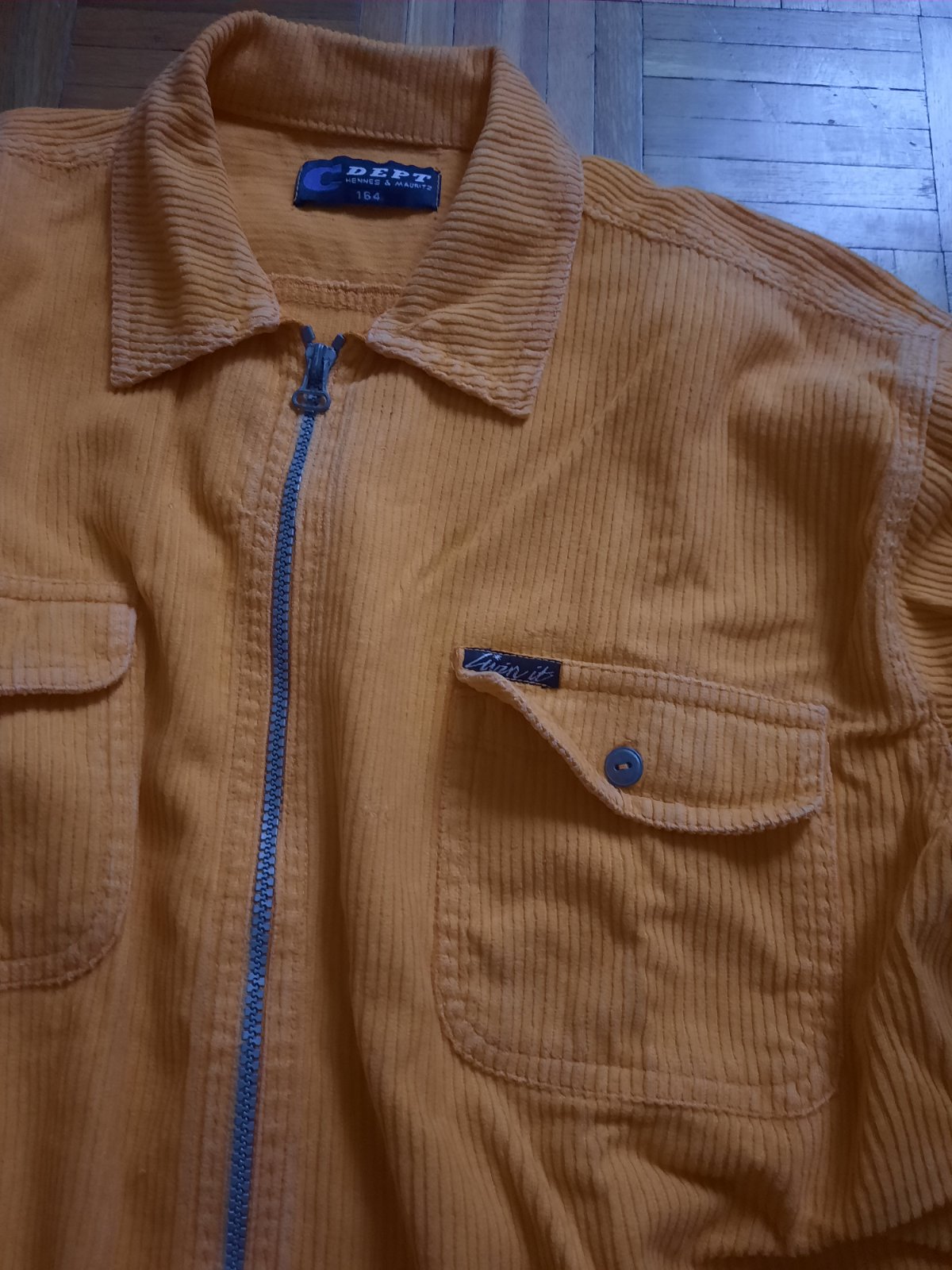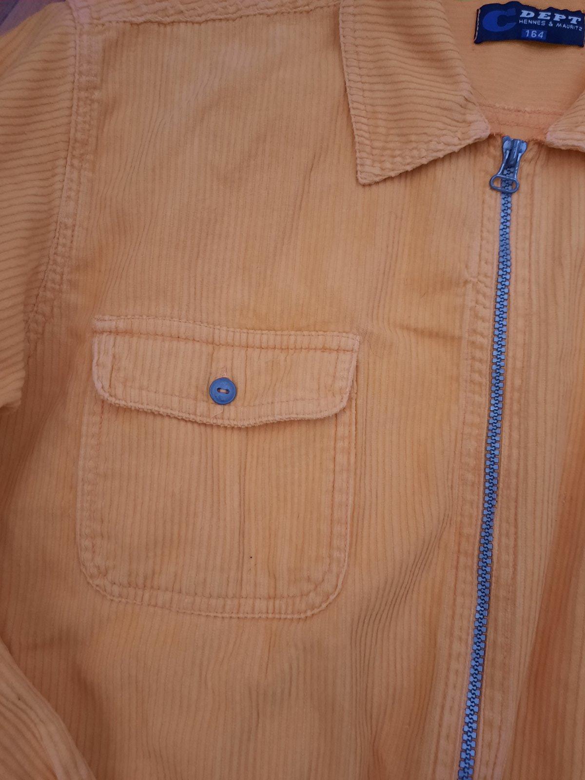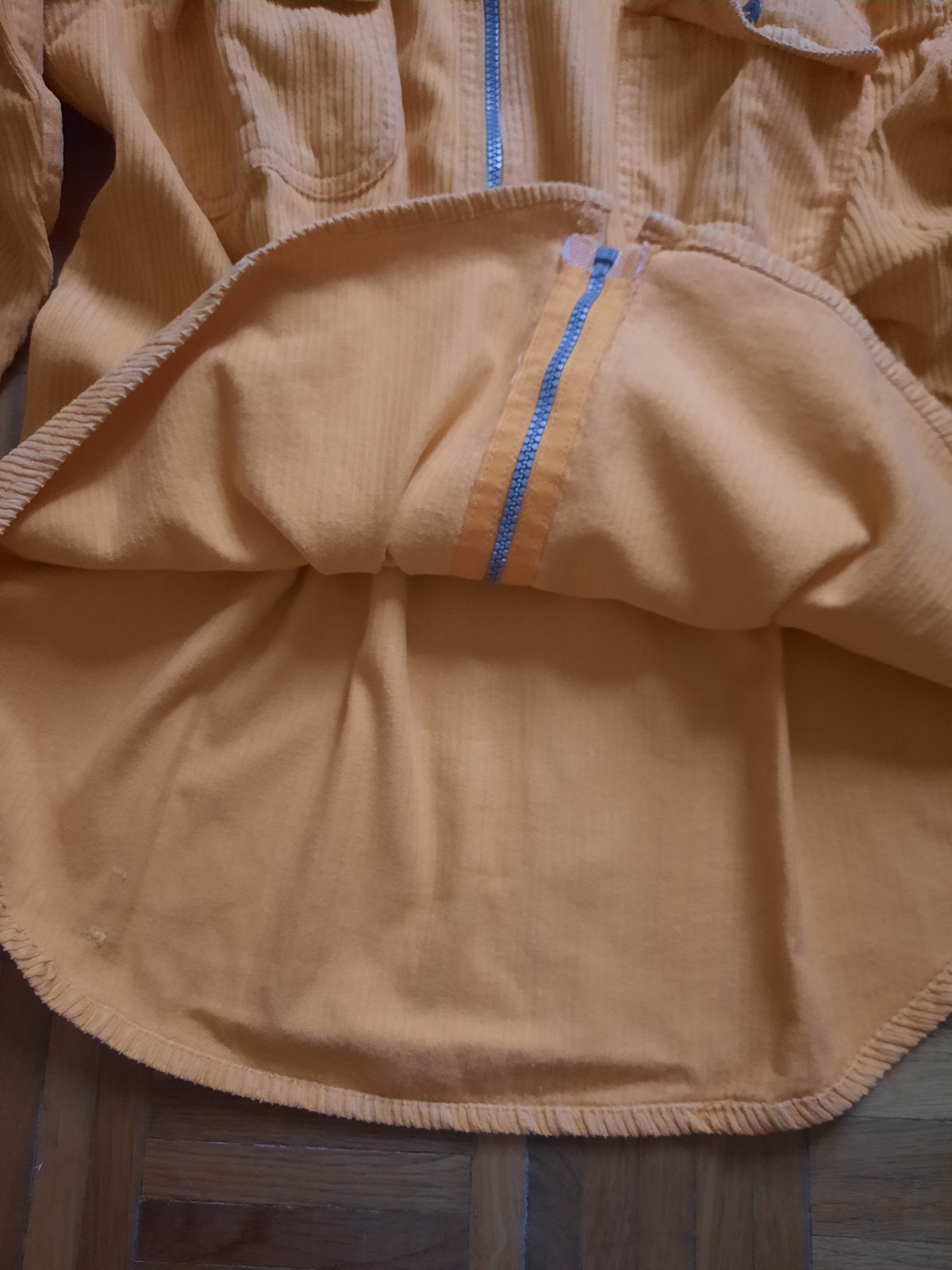 Dá sa nosiť samostatne alebo aj na tričko, pulóver. Je širšieho strihu, takže sa dá využiť aj ako bunda keď si oblečie niečo hrubšie pod to. Spodok je mierne zaoblený. Farba je žlto-oranžová.