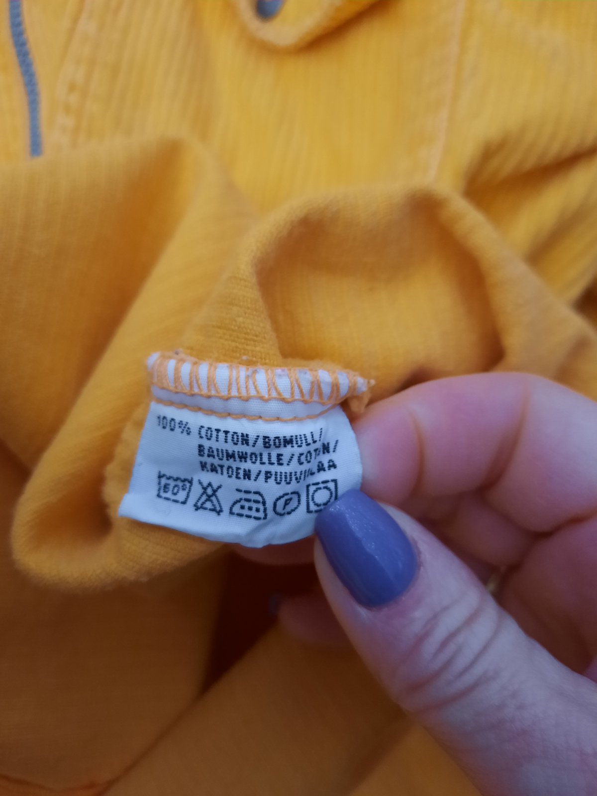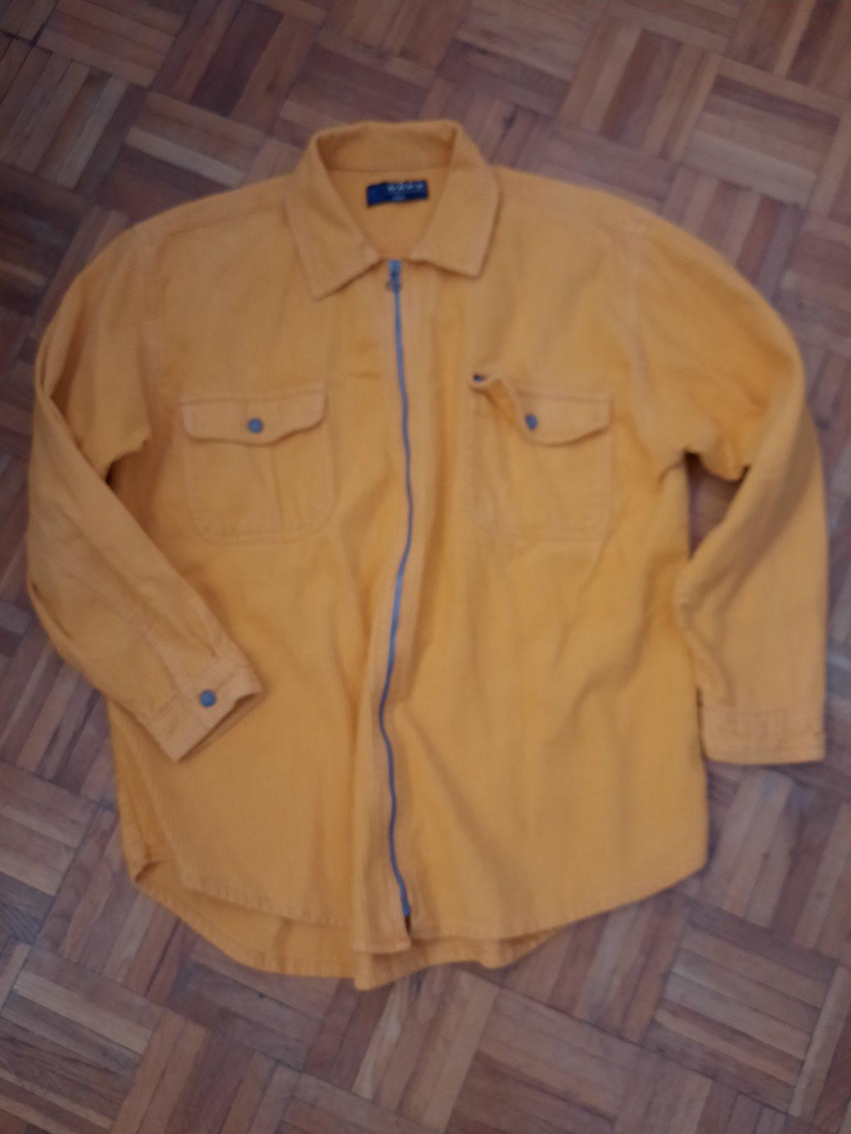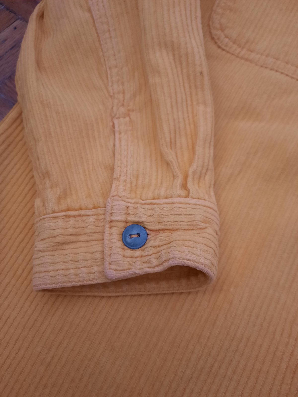 Dá sa nosiť samostatne alebo aj na tričko, pulóver. Je širšieho strihu, takže sa dá využiť aj ako bunda keď si oblečie niečo hrubšie pod to. Spodok je mierne zaoblený. Farba je žlto-oranžová.