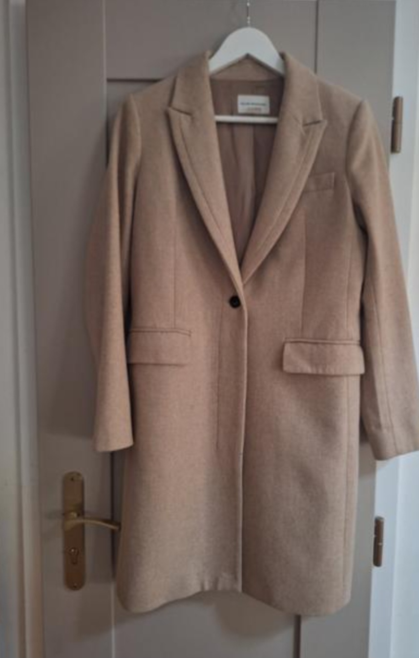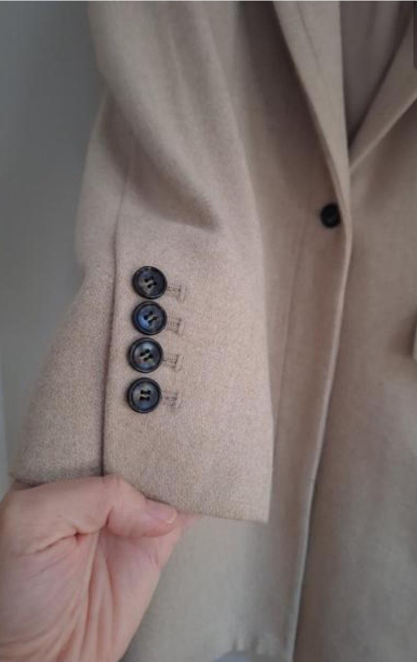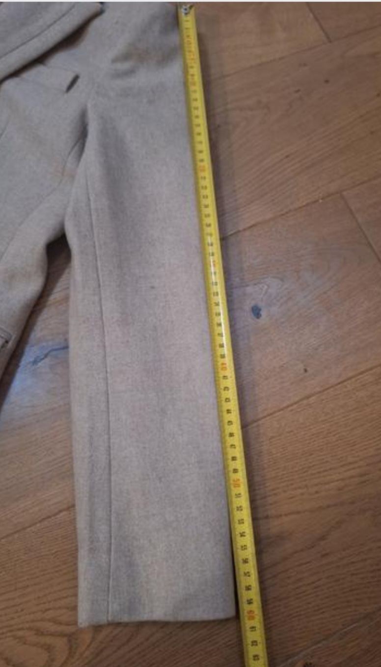 Kabátik prírodnej farby, asymetrické zapínanie, podšitý, málo nosený bez pokoškodenia. Na fotke nežehlený